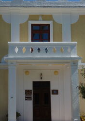 Vom (01) Start und Ziel (323 m) gehen wir 300 m auf der Anfahrtsstraße Richtung Monolithos zurück, um auf Höhe des links auf einem Steinsockel stehenden Kreuzes rechts in die Schotterpiste abzubiegen. An der folgenden Weggabelung und der Kreuzung gehen wir geradeaus bergab.