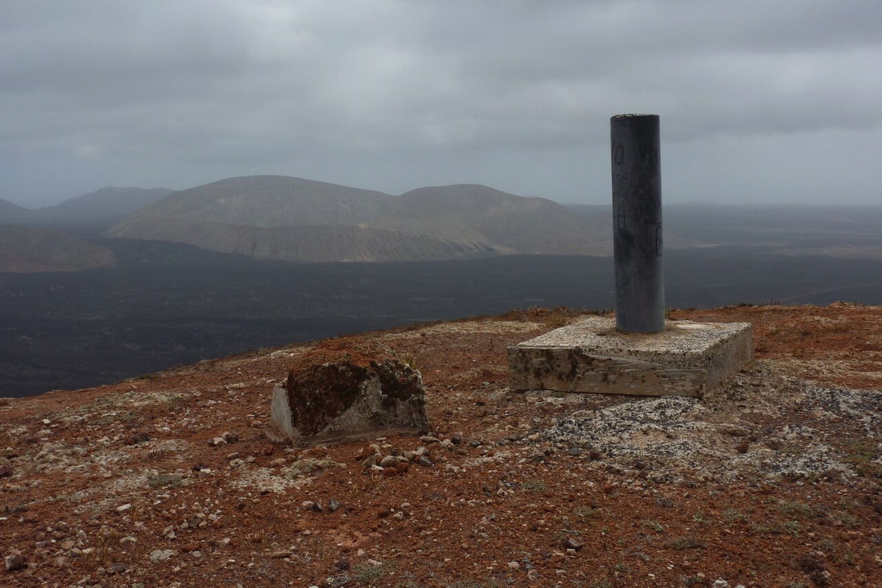 Im oberen Teil der Durchschreitung teilt sich das Barranco abermals. Hier gehen wir zunächst rechts - weil der Weg einfacher ist -, aber nach einigen Metern gehen wir durch den linken Barranco-Arm weiter. Verschiedene Steinfarben und Impressionen lassen uns eine Weile verharren. Nach weiteren 500 m verlassen wir das Barranco und werden auch prompt von dem in der Regel stark wehenden Nordost-Passat erfasst. Wir lassen noch die restlichen Meter zum Gipfel der (03) Montaña de Teneza (368 m) hinter uns. Schaut man von hier aus Richtung Süden, kann man sehr schön erkennen, wie sich die Lava bei den Ausbrüchen von 1730-1736 ihren Weg Richtung Meer gebahnt hat. Wie mit einem Lineal gezogen, trennt eine imaginäre Linie die kultivierten Flächen vom Lavastrom. In südwestlicher Richtung thront der Krater Caldera Blanca.