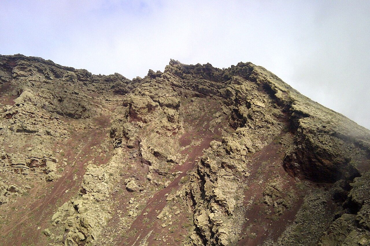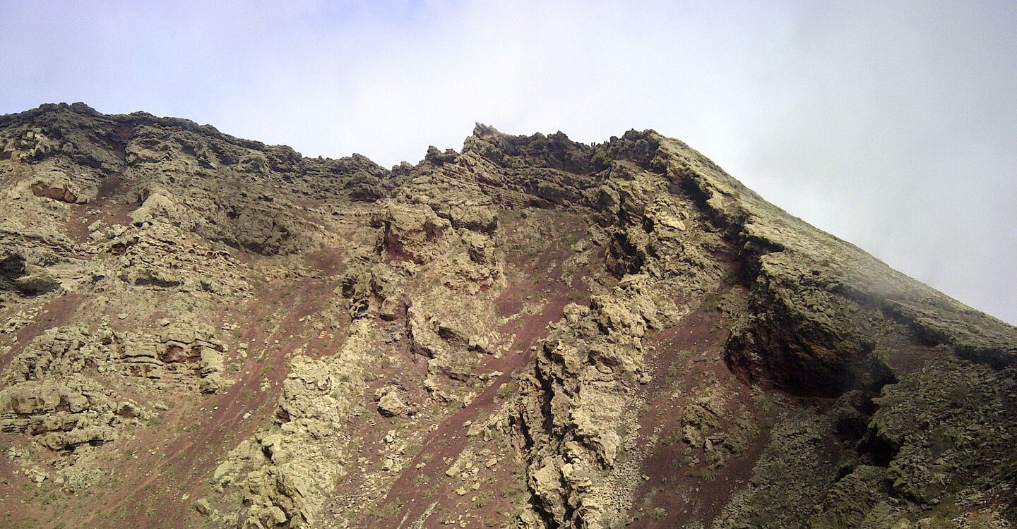 Wir besteigen einen klassischen Vulkan der Neuzeit, den 20.000 Jahre alten Monte Corona. Mit 609 m ist er der zweithöchste Berg Lanzarotes. Der Anstieg führt durch zahlreiche Weinfelder, Gemüse aller Art sowie nicht bewirtschaftete Felder und zeichnet sich durch eine sehr üppige Vegetation aus. Beginnend am Nordostkrater, umrunden wir auf einer spektakulären Wanderung den nahezu kreisrunden Vulkan einmal auf seinem Kraterrand. Während der gesamten Wanderung genießen wir eine 360-Grad-Panoramarundsicht mit allem, was der Norden der Insel zu bieten hat.