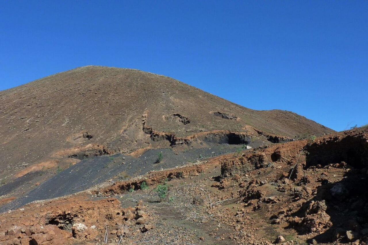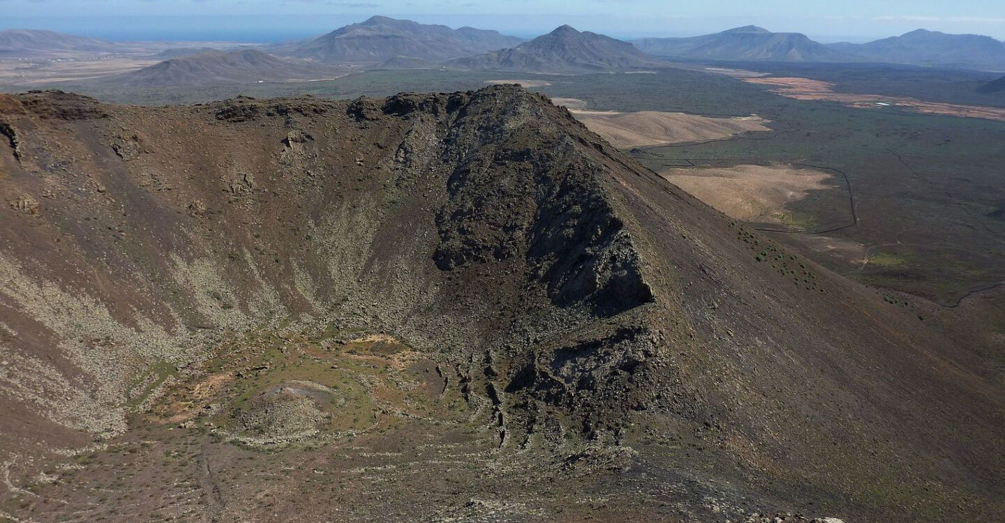 Die letzten vulkanischen Aktivitäten auf Fuerteventura erloschen vor 4.000 bis 5.000 Jahren. Dabei waren das Naturdenkmal Caldera de Gairia – Ziel der heutigen Wanderung – und der Vulkan de la Arena im Norden von Fuerteventura die letzten aktiven Vulkane. Nachdem wir die Tomatenplantagen von Tiscamanita hinter uns gelassen haben, beginnt ein spektakulärer Aufstieg über den südlichen Grat der Caldera de Gairia auf den Kraterrand. Besonders beeindruckend ist es, an dieser Stelle nachzuvollziehen, wie sich der Lavastrom seinen Weg Richtung Osten bis nach Pozo Negro und weiter ins Meer bahnte. Beim spektakulären Abstieg geht es vorbei an zwei großen Erosionseinbrüchen – ein Muss für jeden geologisch oder an Vulkanen Interessierten.
