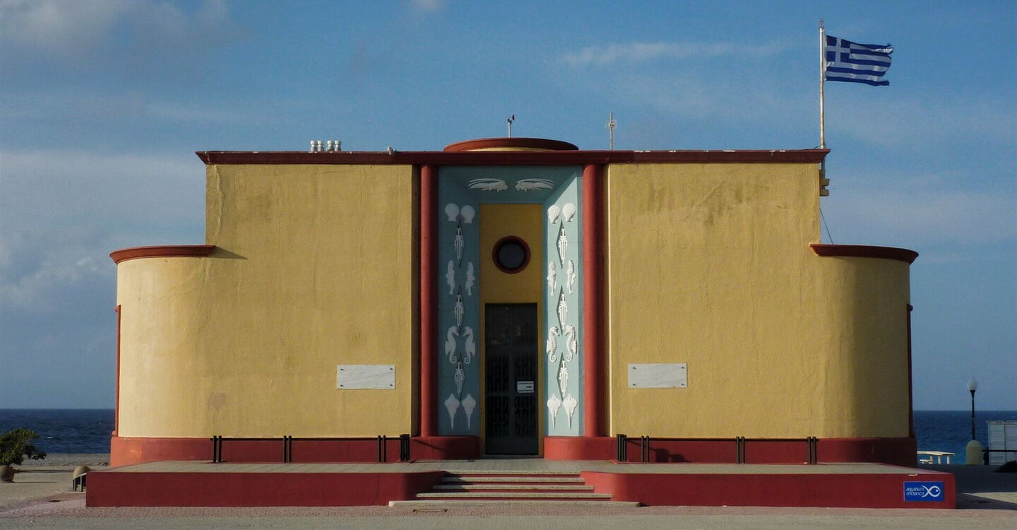 An der nördlichen Spitze von Rhodos erreichen wir das (04) Aquarium (3 m), 1934 unter italienischer Herrschaft erbaut. Das Aquarium ist in einer unterirdisch geformten Höhle untergebracht, mit Gängen aus porösem Sandgestein und dekoriert mit natürlichen Schalentieren. Wir setzen unsere Wanderung am Stadtstrand fort und gehen noch vorbei am Kreisverkehr mit den Statuen (Diagoras von Rhodos auf den Schultern von Damagetos und Akousilaos), bis wir nach 400 weiteren Metern direkt hinter dem Hotel Belvedere S.A. in die Straße biegen und bei der nächsten Gelegenheit, ca. 200 m, scharf rechts die Sackgasse hineingehen. Die Straße endet vor einem Anwesen, wo wir links auf dem Pfad bergauf gehen.