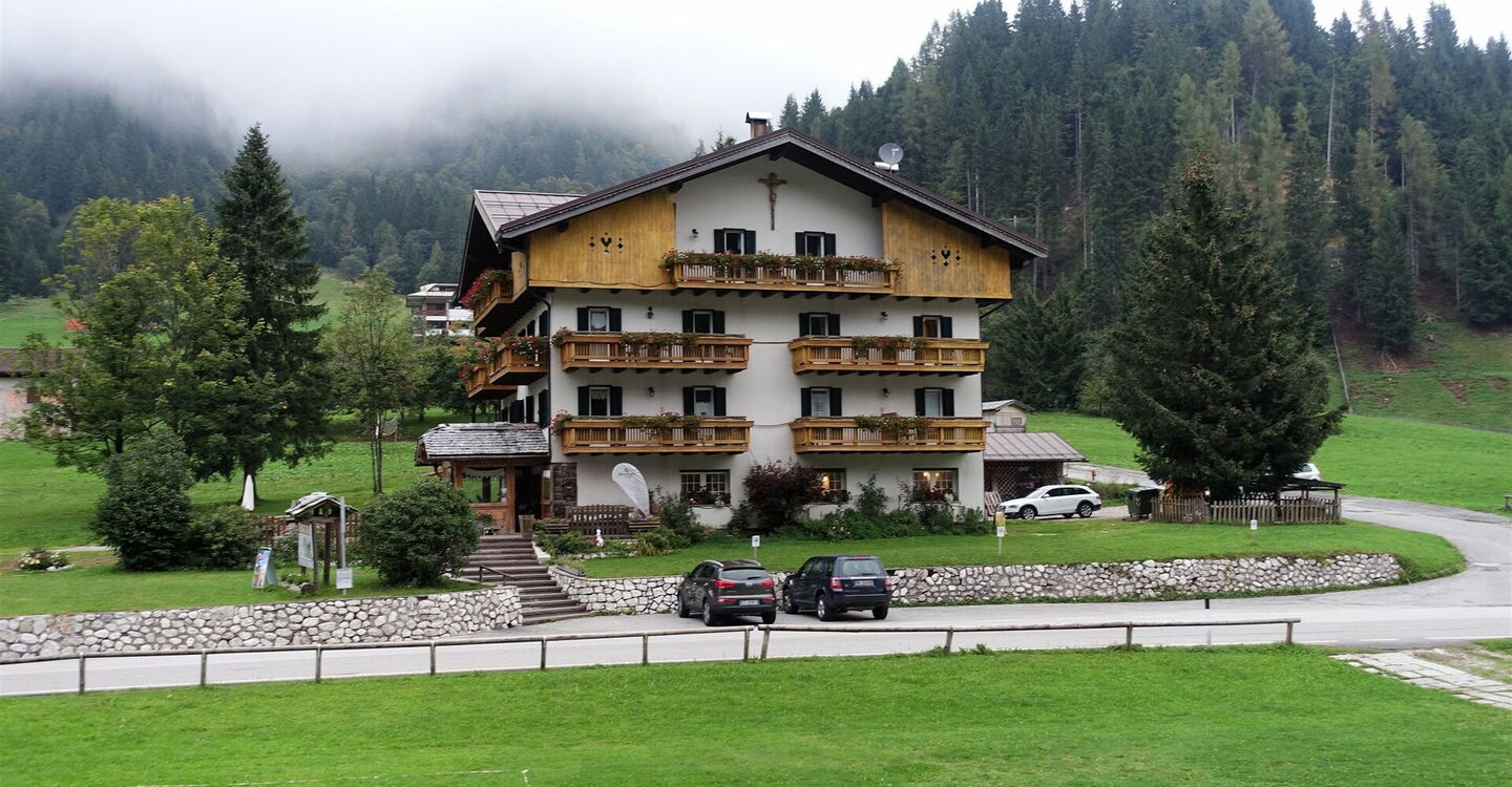 Von der Unterkunft am 01 Passo Cereda (1.361 m) gehen wir 50 m in westlicher Richtung auf der Hauptstraße, um dort scharf links auf die Straße abzuzweigen. Dort beginnt der Wanderweg 8 zum Passo del Comedon.