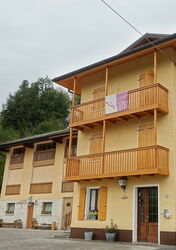 Dort, wo sich der Pfad gabelt, orientieren wir uns an dem halb rechts weiterführenden Pfad – rechts unterhalb befindet sich an dieser Stelle eine Schlucht. Bei einer romantisch gelegenen Casa, auf einer Waldlichtung gelegen, endet der Pfad und wir gehen auf der nachfolgenden Piste bergab. Von rechts mündet ein Weg in den unsrigen und nach wenigen Metern überqueren wir einen Bachlauf. Unsere Piste mündet in eine weitere Piste, auf der wir geradeaus weitergehen und abermals ein Bachbett queren. Bei einem Picknickplatz und Informationstafeln haben wir das 03 Val di Lamen (723 m) erreicht. Wer des Wanderns müde ist, entscheidet sich für die Variante (1) und geht rechts auf der Straße bergab.