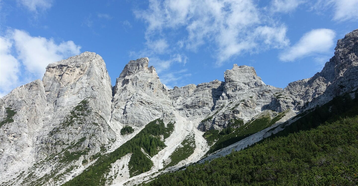 Die Etappen 17 bis 22 führen nun allesamt durch die Bergwelten der Schiaragruppe. Eine Untergruppe bildet die Tamergruppe, die sich östlich vom Passo Duran erhebt. Ihr höchster Gipfel ist der 2.550 m hohe Tamer Grande, unter dessen Westwänden wir bis zur Casa del Moschesin wandern. Sobald wir dann freien Blick Richtung Südosten haben, schauen wir auf die drei Gipfel der Cima de Zità – sie gehören zur Talvenagruppe (siehe Tour 18). Ein besonderes Schmankerl folgt noch: Hinter der Forcella Moschesin haben wir freien Blick auf den Monte Pelmo und Antelao – wir erleben mal wieder eine große Schau der Berge.