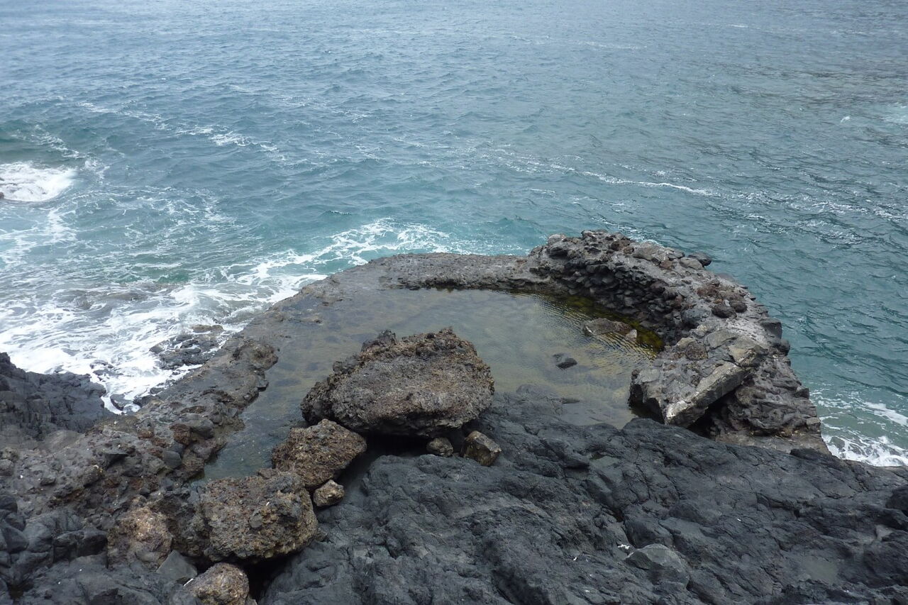 Markant geht es auf eine am Wegesrand stehende Lavamauer zu, bis der Weg sich um die Landspitze Richtung (05) El Muelle De Lorenzo (33 m) neigt. In der zweiten Hälfte des 20. Jahrhunderts begannen der Anbau und die Vermarktung von hauptsächlich Tomaten und weiteren Gemüsesorten im sehr fruchtbaren Tal von Hermigua. Zunächst musste jedoch die adäquate Infrastruktur zum Abtransport der Güter geschaffen werden. Aus diesem Grund entstanden die Verladestationen El Muelle De Lorenzo. Dieser neue Pier erleichterte zwar die Verschiffung von Fracht, erbrachte jedoch nicht die gewünschten Bruttoregistertonnen. Woran lag es? Wie wir heute auf unserer Wanderung erleben werden, waren enorme Anstrengungen nötig, um die Fracht zum Anleger zu transportieren - das war auf Dauer nicht rentabel. Heutzutage findet man nur noch die Ruine des Büros der Firma Fyffes und die Reste des alten Pier De Lorenzo vor. Wir gehen auf dem gleichen Weg zurück.