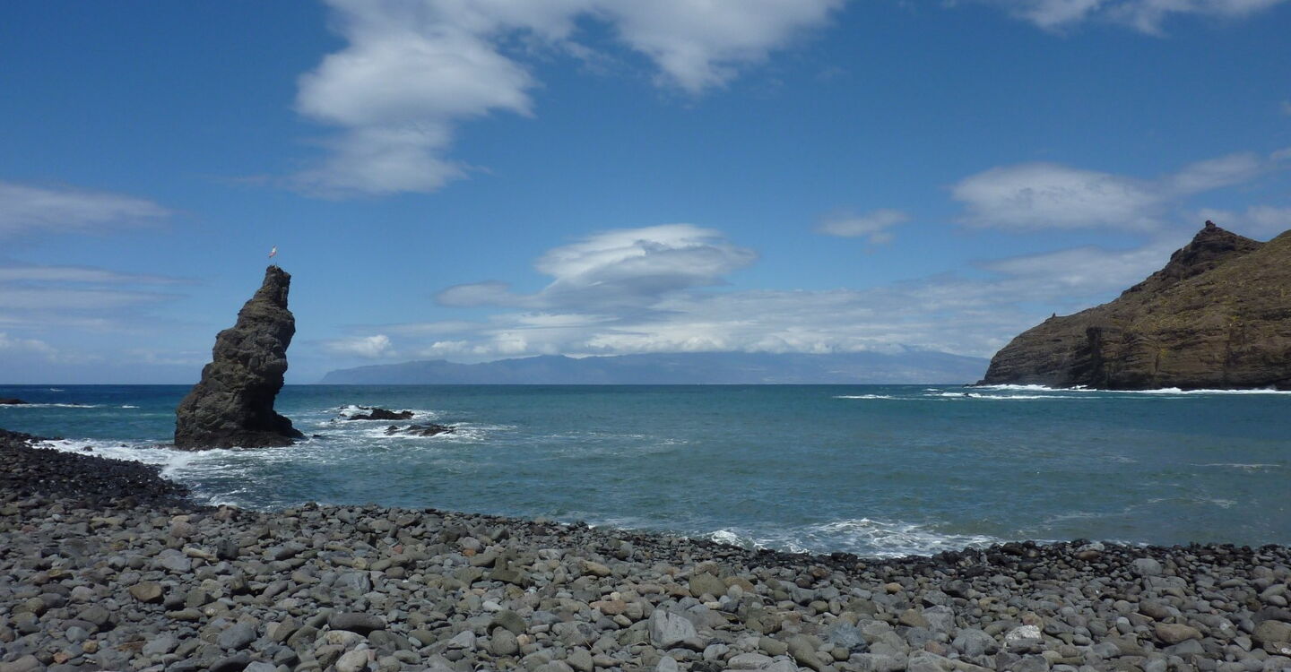Dieser Strandabschnitt am Playa de La Caleta war eine erste natürliche Anlegestelle für die An- und Abreise von Menschen der Gemeinde Hermigua. Die Schiffe ankerten in der Nähe der Bucht, Fracht und Passagiere wurden mit kleinen Beibooten an den Strand gebracht. Vom (01) Start und Ziel am Playa Caleta (30 m) gehen wir auf der Asphaltstraße, bis wir nach 720 m auf einen kleinen Parkplatz treffen.