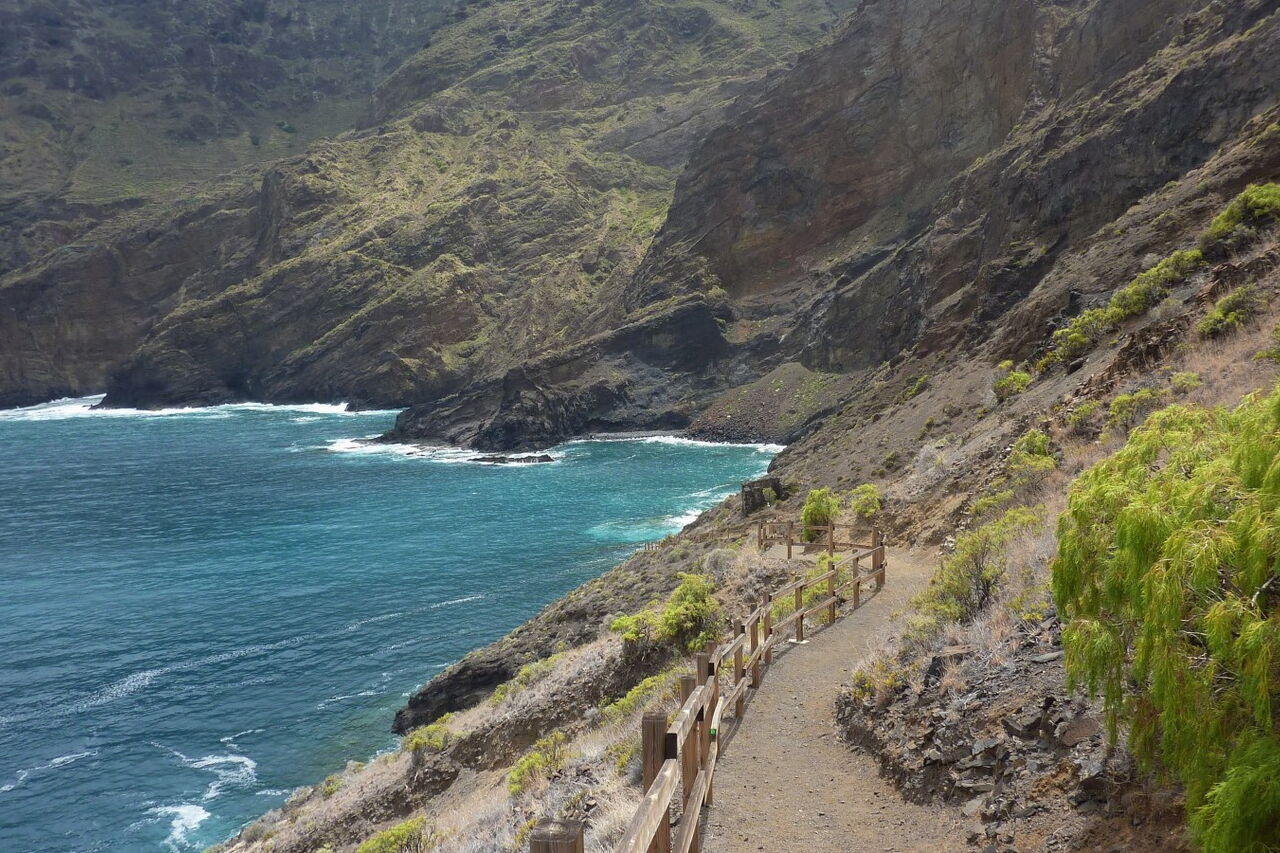 Die Gemeinde Hermigua hat mit nur 8 km - verglichen mit den anderen fünf Gemeinden auf La Gomera - den kürzesten Küstenstreifen. Bis zum Bau der Fernstraße war der Transport von Frachten auf dem Landweg nicht rentabel (siehe Wanderung 40 La Carbonera - Degollada de la Cumbre). So entstanden die drei Anlegestellen Pescante de Agulo, Pescante de Hermigua und unterhalb der zerklüfteten Klippen der Punta De Lorenzo der schwer zugängliche Pier Lorenzo. Die Gemeinde Hermigua nutzte diese drei Zugänge zum Meer für Import und Export. Auf dieser Wanderung geht es auf historischen Wegen zur El Muelle De Lorenzo. In den vergangenen Jahren wurde der Zugang zum Pier renoviert und für die Öffentlichkeit freigegeben.