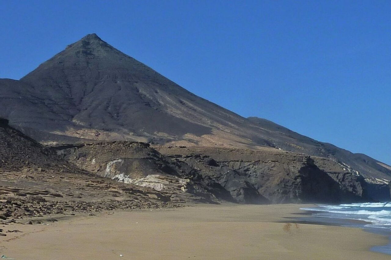 Im oberen Bereich treffen wir auf einige Felsstufen, die wir umlaufen müssen, um den Gipfel des (03) Pico las Pilas (470 m) zu erreichen. Vom Gipfel ergibt sich eine atemberaubende 360°-Rundsicht. Richtung Westen blickt man über den Südzipfel des Eilands, während man Richtung Osten direkt in die steile Flanke des Jandia-Bergmassivs hineinschaut. Der 14 km lange Sandstrand rundet das Naturschauspiel ab.