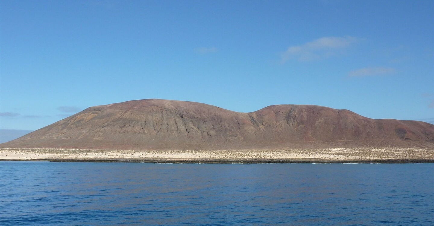 Es folgt ein landschaftlich sehr schöner Weg. Auf der rechten Seite sieht man die Nordspitze von Lanzarote mit den steil abfallenden Klippen des Famara Gebirgsmassivs. Links auf La Graciosa sind die 04 beiden Vulkane 3 m Agujas Grandes (267 m) und Agujas Chicas (257 m) zu sehen.