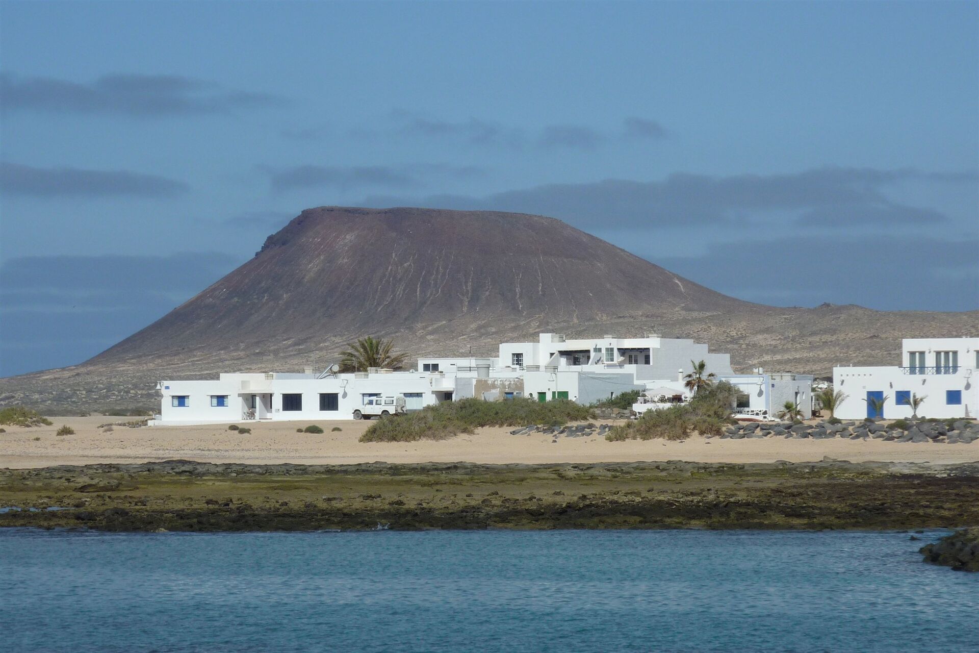 Am 01 Hafen und Start 0 m des Fischerdorfs Caleta del Sebo angekommen, halten wir uns rechts auf dem großen Platz und gehen durch die Schranke hindurch, um bei der örtlichen Fischerei links zu gehen.