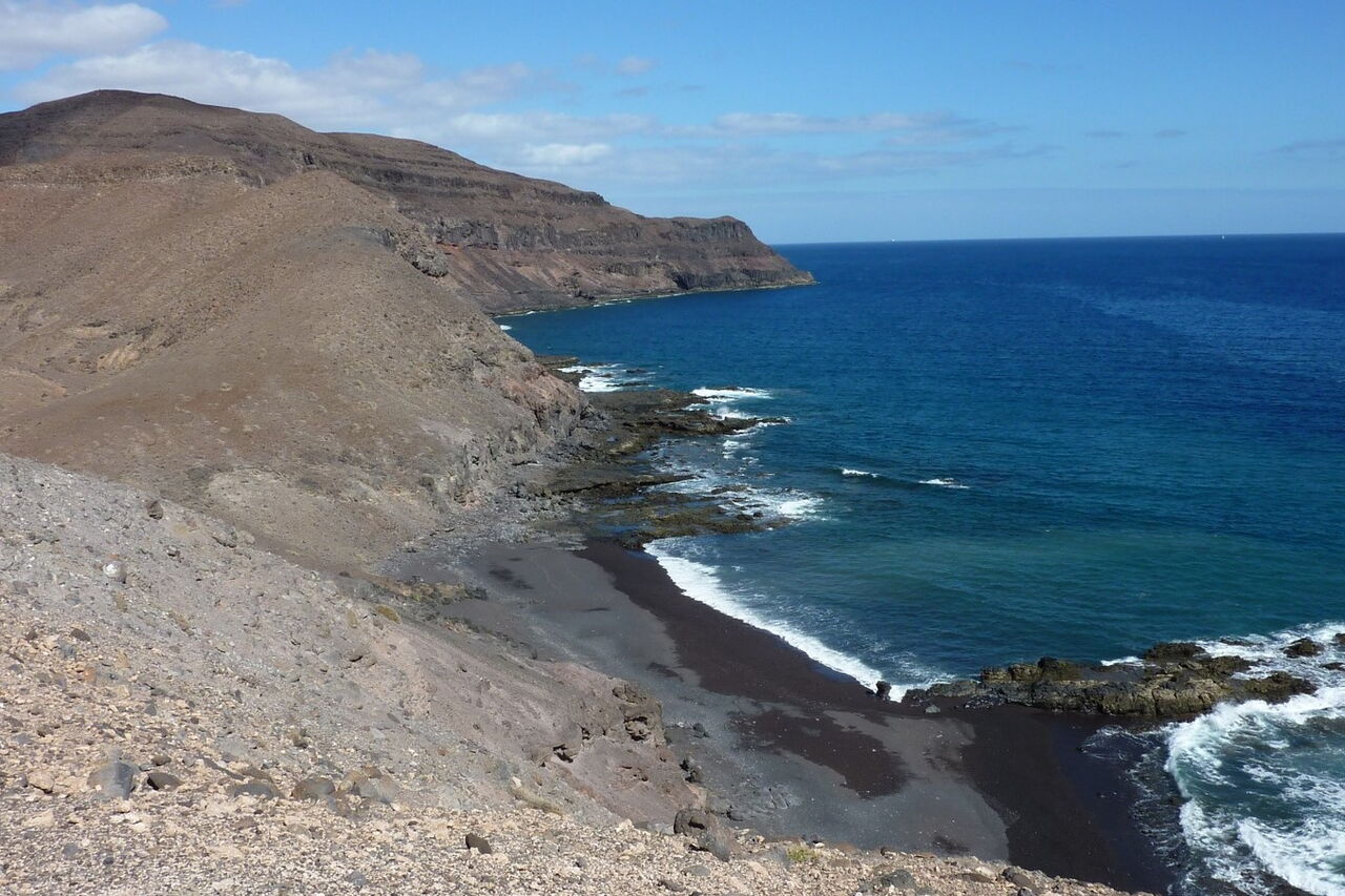 Das Auto ist geparkt und wir gehen weiter Richtung Meer. Dort angekommen, führt links ein klar erkennbarer Pfad auf die vor uns liegende Anhöhe. Nach 1,25 km ist der höchste Punkt mit 150 Höhenmetern erreicht. Es ergeben sich spektakuläre Blicke von der Steilküste bis tief ins Meer herunter. Von nun an geht es wieder bergab auf einem weiterhin gut erkennbaren Pfad. Nachdem wir eine weitere kleine Anhöhe hinter uns gelassen haben, steigen wir in das Barranco Guincho herunter und gehen nun rechts die restlichen Meter bis zu dem kleinen Strandabschnitt. Zurück zum Ausgangspunkt nehmen wir den gleichen Weg.