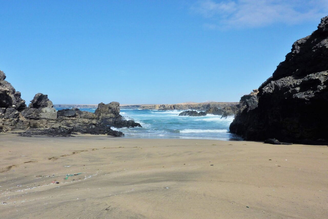 Der Strand wird wenig besucht. Er ist 70 m lang, bei Niedrigwasser 5 m breit und zeichnet sich durch feinen weißen Sand aus. Der Strand liegt im Norden von Fuerteventura, westlich der Ortschaft Tindaya. ǀ Der Strand ist einfach erreichbar. Zugang: Auto und Wanderung ǀ Bei nur geringem Wellengang ist Baden möglich. ǀ Verschiedenes: sehr romantischer, sauberer Strand mit sauberem Wasser, je nach Windrichtung kann Müll am Strand angeschwemmt werden, teilweise Schatten, mit dem Buggy gut erreichbar, FKK möglich, Hunde nicht erlaubt ǀ Toiletten, Duschen, Sonnenstühle und Sonnenschirme sind nicht vorhanden ǀ Aktivitäten: Hier können wir einfach die Seele baumeln lassen. ǀ Tipp: Besuchen Sie den Strand auf keinen Fall nach starken Regenfällen, da dann die Schotterstraße unbefahrbar wird! Planen Sie mithilfe der Webseite Gezeitenfisch einen Tag mit Niedrigwasser ein, um den Strandabschnitt nutzen zu können. |