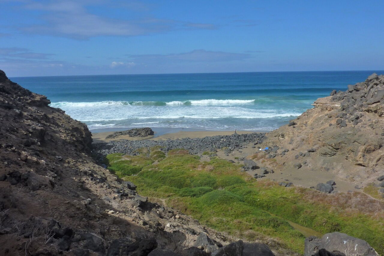 Der wenig besuchte, 100 m lange und bis zu 10 m breite feine Sandstrand liegt im Norden von Fuerteventura, westlich der Ortschaft Tindaya. ǀ Der Strand ist einfach erreichbar. Zugang: Auto und Wanderung ǀ Bei nur geringem Wellengang ist Baden möglich. ǀ Verschiedenes: romantischer, sauberer Strand mit sauberem Wasser, kein Schatten, mit dem Buggy erreichbar, FKK möglich, Hunde nicht erlaubt ǀ Toiletten, Duschen, Sonnenstühle und Sonnenschirme sind nicht vorhanden ǀ Aktivitäten: Hier können wir einfach die Seele baumeln lassen. ǀ Tipp: Besuchen Sie den Strand auf keinen Fall bei starkem Wind. Planen Sie mithilfe der Webseite Gezeitenfisch einen Tag mit Niedrigwasser ein, um den Strandabschnitt nutzen zu können. |