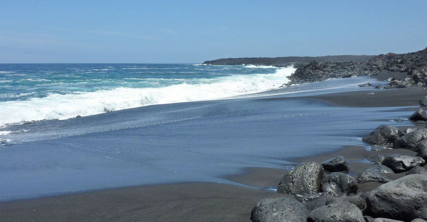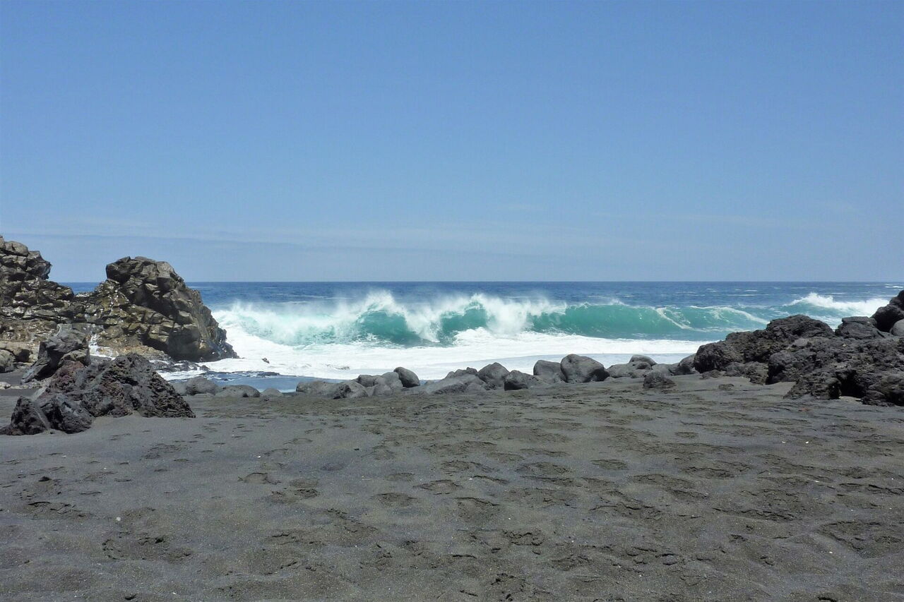Es erwartet uns eine spannende Pkw-Fahrt durch eine lebensunfreundliche Lavalandschaft, gefolgt von einer erlebnisreichen Wanderung zu einem Traumstrand. Art des Weges: Anfahrt auf einer Schotterpiste. Die kurze Wanderung geht über Sand und Felsen. Ein Strand, der zum Verweilen einlädt! Daher sollte folgende Ausrüstung nicht fehlen: Sonnenhut, Sonnencreme, Sonnensegel, Essen und Trinken. Einkehr: Es gibt weit und breit keine Einkehrmöglichkeit. Beste Zeit für diese Tour: Das ganze Jahr über. Auf der linken Seite des Strandabschnitts erhebt sich eine 5-7 m hohe Felswand, an der sich die Wellen spektakulär brechen. Direkt vorgelagert befindet sich ein natürliches Wasserbecken, in dem man sich abkühlen kann.