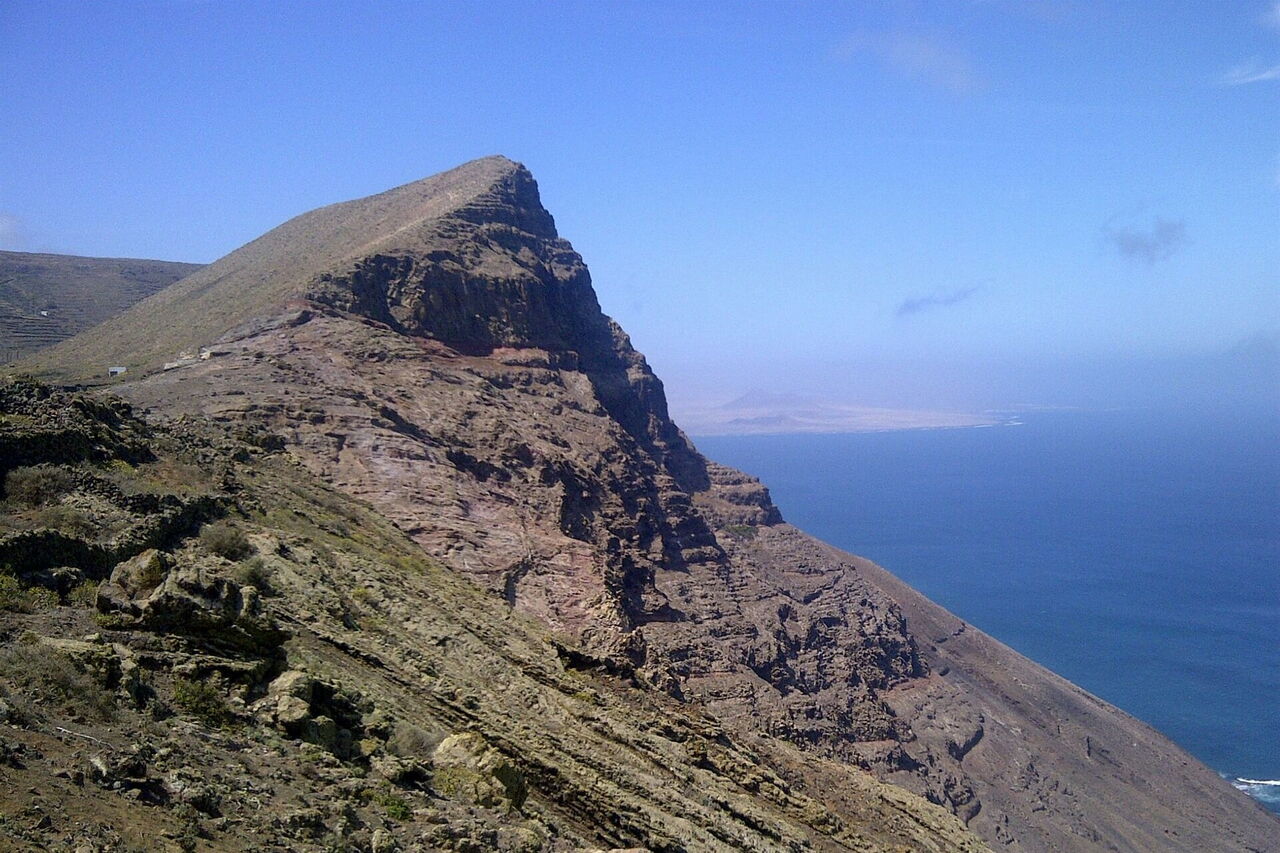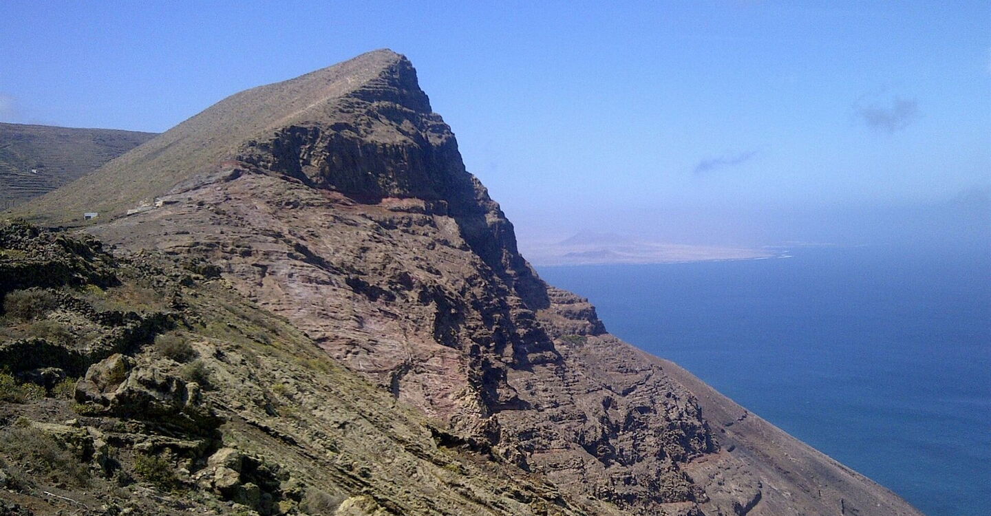 Vom 01 Parkplatz 359 m Las Rochitas gehen wir den gepflasterten Weg bis zum Klippenrand vor. Traumhafte Fernblicke über die Meeresenge El Rio sowie die Nachbarinsel La Graciosa - Teil des Chinijo-Archipel-Naturschutzgebiets - laden zum Verweilen ein. Rechts von uns, unterhalb der Klippen, sieht man verlassene Salinen. Weiter unterhalb liegt unser Ziel, der Playa del Risco. In steilen Kehren geht es im Zickzack bergab.