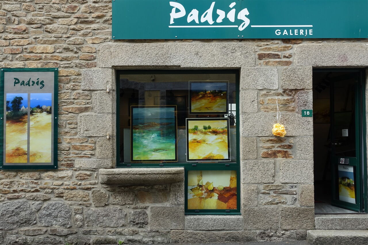 Vom Parkplatz gehen wir unter der Brücke hindurch. Entlang der Galerien und des Museums geht es durch den kleinen Ort 01 Pont-Aven (17 m). Hinter der Brücke gehen wir dann links in die Rue du Port, weitere Galerien folgen. Hinter dem letzten Parkplatz beginnt dann der Wanderweg, auch ausgeschildert Richtung Plage Port Manec`h. Kurz hinter dem Nebenarm eines Flusses gehen wir nicht links, wie der Wegweiser es möchte, sondern geradeaus weiter. Damit die Gesamtstrecke nicht zu lang wird, kürzen wir immer wieder Wegstücke ab. Nachdem wir ein kurzes Stück auf einem mit Steinen gesäumten Weg gelaufen sind, biegen wir halb rechts auf eine Piste ab, an deren Ende wir links durch verstreut liegende Häuser wandern, bevor wir dann links an einem braun verkleideten Schuppen vorbeikommen.