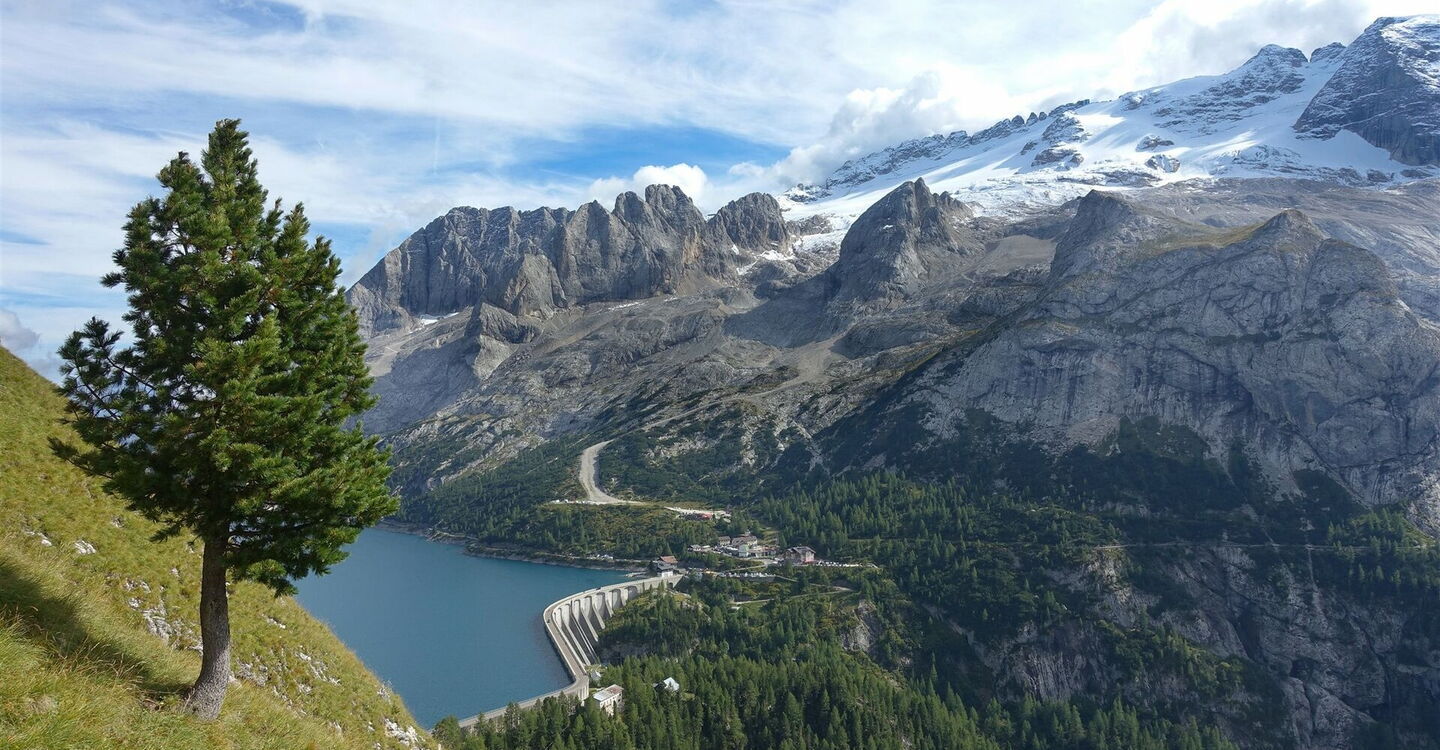 Heute heißt es entspannen und die prachtvolle Aussicht auf die Marmolata genießen. Wir wandern auf dem sogenannten Bindelweg vom Pordoijoch zum Lago Fedaia. Dieser war schon in der Vergangenheit ein wichtiger Verbindungsweg und wurde von Mehlhändlern aus der Provinz Belluno genutzt. Dadurch war es möglich, regen Handel zu betreiben. Mehl wurde gegen handgefertigte Produkte aus der Provinz Trentino getauscht. Auch erhielt die Hütte am Wegpunkt 03 den Namen Weg des Brotes, d. h. übersetzt ins Italienische Viel dal Pan. Wiederentdeckt wurde der Weg von dem Deutschen Dr. Karl Bindel, deswegen heißt er auch Bindelweg.