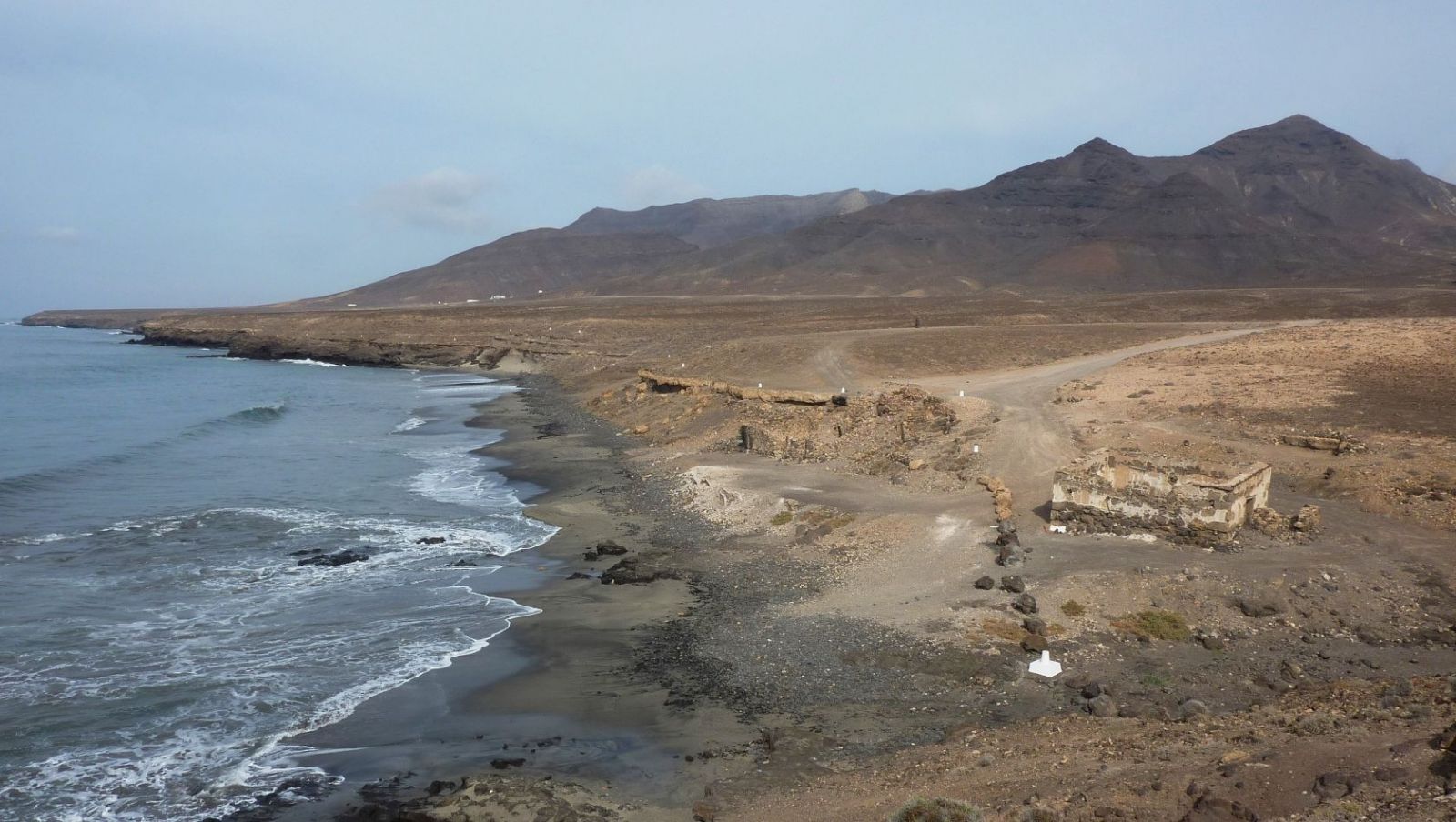 Busanbindung: keine. Pkw-Anfahrt: 23,7 km von der Costa Calma bis zum Parkplatz. Wir fahren auf der FV-2 bis zum Hafen von Morro Jable. Dort angekommen, verlassen wir den Kreisverkehr bei der ersten Straße rechts und fahren nun immer parallel zur Mole, bis wir das nordwestliche Ende des Hafens erreicht haben, wo wir das Auto parken. Geokoordinaten Parkplatz: 28.052433 -14.364083.