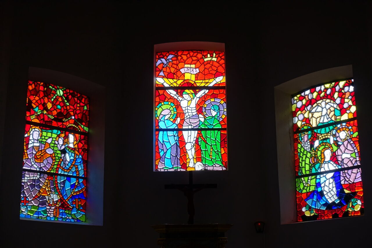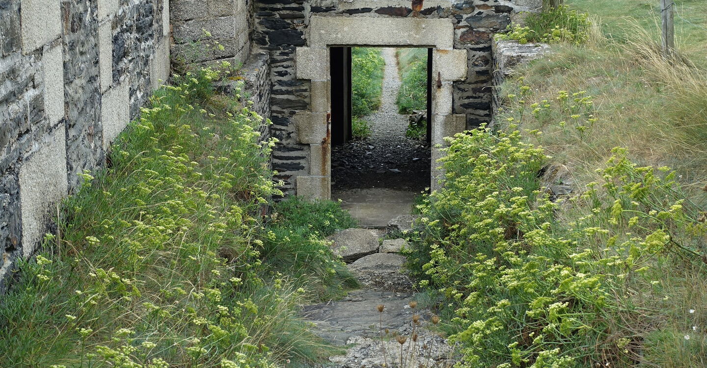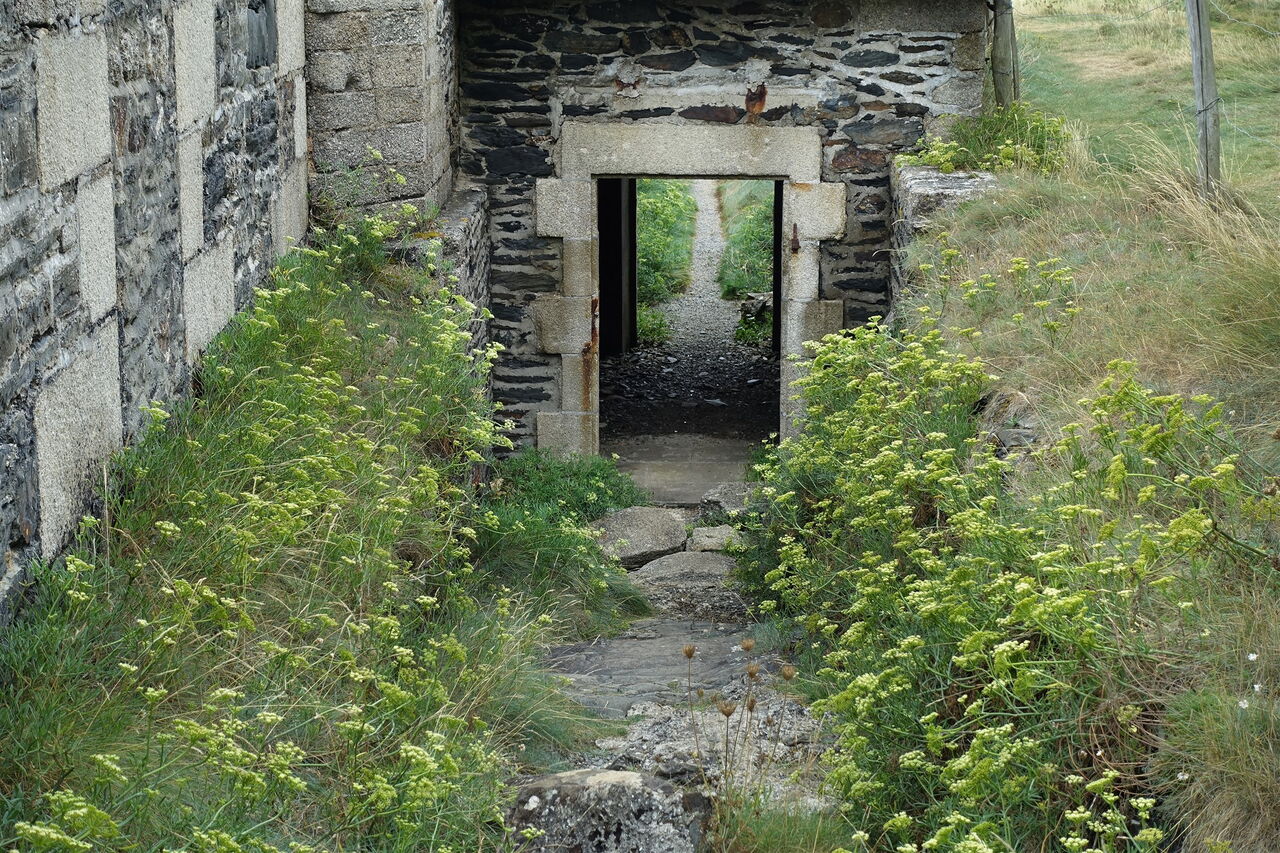 Zwischen Hauptstraße und Parkplatz biegen wir rechts in die Rue de la Marie Roscanvel ab und erreichen die Kirche 01 Église Saint-Éloi (16 m). Wir wechseln auf die Schotterpiste, an deren Zugang ein Verkehrsspiegel befestigt ist, und gehen nun auf einem alten Verbindungsweg weiter. Dann überqueren wir die nachfolgende Straße am Zebrastreifen und queren die folgenden drei Straßen: Route du Ménez, Route du Milieu und Route du Disloup. Bei der Weggabelung im Waldstück halten wir uns halb rechts und überqueren die Route de Mencaer. An mächtigen Pinien gehen wir rechts und sofort wieder links. Wir folgen dem Verlauf, bis die Straße vor einer Steinmauer endet. Anschließend gehen wir rechts in Richtung der Ortschaft Kerguinou und biegen bei einem Strommast aus Beton links in die Piste ein. An der Hauptstraße laufen wir 70 m rechts, dort links und weiter bis zur Weggabelung, an der wir den Bunker rechts liegen lassen.