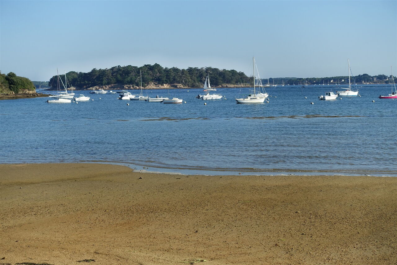 Bei vereinzelten Häusern gehen wir zweimal rechts und erreichen so den 02 Plage des Fontaines (4 m). Es ergibt sich ein wunderschöner Blick auf die Einbuchtungen des Golfs von Morbihan mit seinen vielen bunten Segelschiffen und die Häuser auf dem dahinter liegenden Festland. Wir umrunden die Pointe de Penbert und laufen wieder landeinwärts. Bei der ersten Weggabelung – hier befindet sich ein Betonklotz – halten wir uns halb links, praktisch durch die Vorgärten wunderschöner Villen. Hinter Treppen geht es über eine Grünfläche und auf der nachfolgenden Straße links. Hinter einem kleinen Parkplatz geht es dann auf dem Zöllnerpfad bis zur Pointe de la Palisse – die zweite Landspitze. Verweilt man hier einen kurzen Augenblick und beobachtet das Spiel der beeindruckenden Gezeiten, so sieht man, dass das Wasser reißend und schnell wie Stromschnellen fließt – ein besonderes Naturschauspiel aufgrund des zu- oder ablaufenden Wassers.