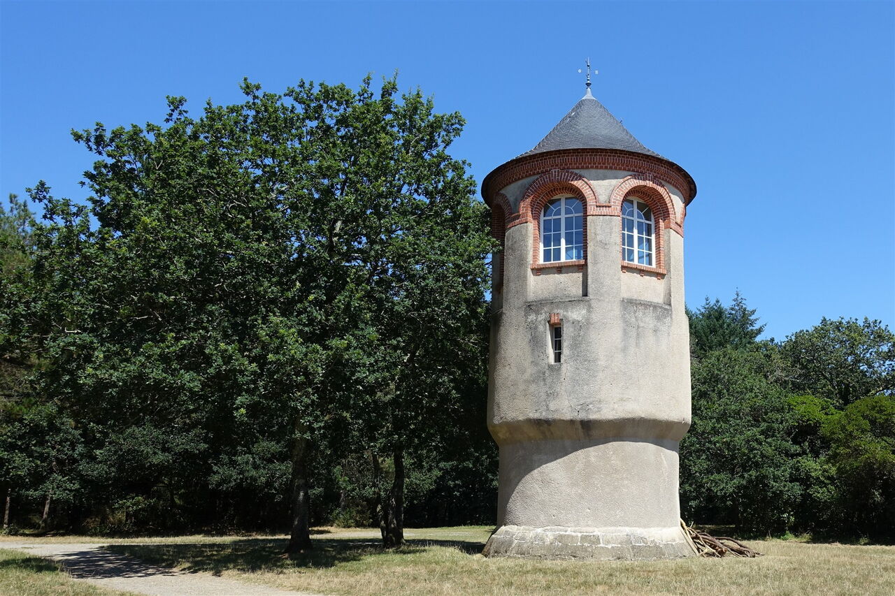 Der Pfad mündet in die Rue de Fontenon, auf der wir 270 m gehen, um bei einem weiteren Markierungspfeiler aus Holz die Straße nach halb links zu verlassen. Durch ein Waldgebiet gehen wir entlang des Baches Lihuanteu und erreichen kurz hinter einer Straße einen Steinbruch mit See. Am Ende der Straße gehen wir links leicht bergab, bis wir bei dem Ortseingangsschild von Saint-Avé rechts über den Zebrastreifen gehen und auf einen Fußgängerweg parallel zur Straße gelangen. Bei einem Felsen, der auf dem Weg liegt, gehen wir rechts den Pfad hoch, dann auf dem nachfolgenden Weg links, sofort rechts über die Holzbohlen und nun immer geradeaus durch den Wald von Belvédère bis zum 05 Belvédère de Kerozer (63 m). Dort befindet sich eine alte Windmühle, die zum Gut Kerozer gehört. Wir gehen auf dem gleichen Weg bis zu den Holzbohlen zurück, dort rechts und bei der darauffolgenden Straße abermals rechts. Wir verbleiben nun immer auf der Rue d'Alésia und der Rue du Lavoir, bis die Kirchenspitze den verbleibenden Weg weist.