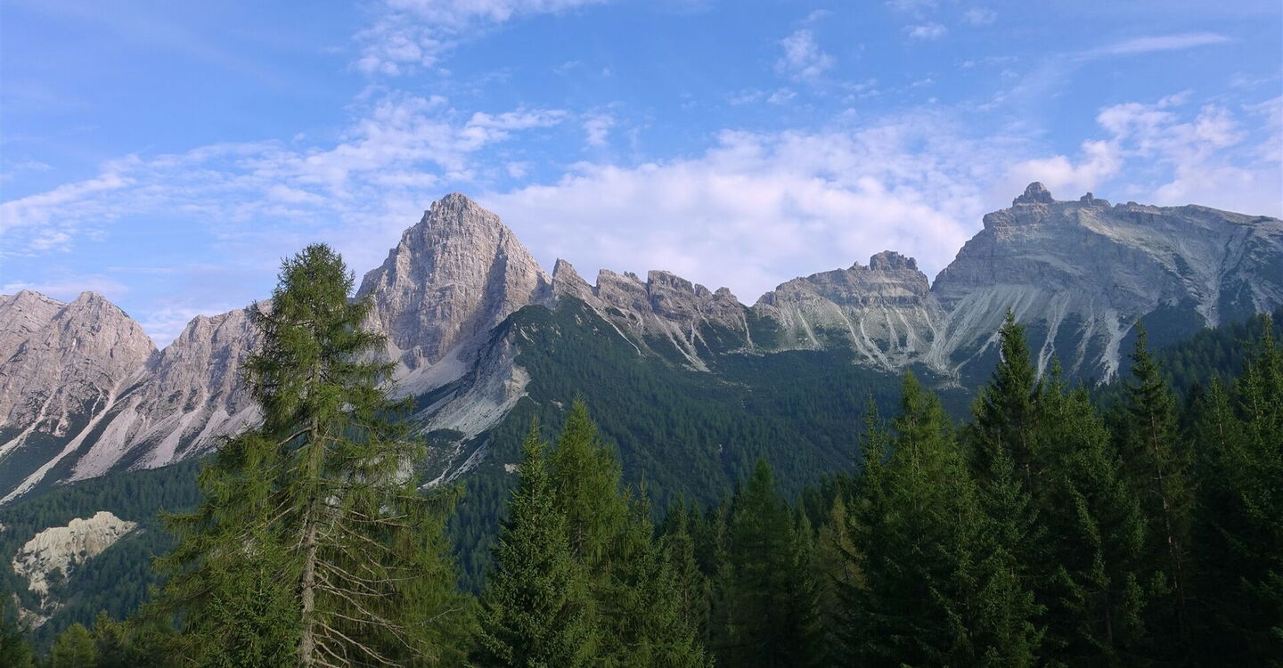 Vor der hölzernen Haltestelle des Zubringerbusses biegen wir halb rechts auf den Wanderweg 478 ab. Dieser mündet kurz später wieder in die Schotterstraße. Nach kurzem Abstieg erreichen wir die 04 Forcella Deona (2.046 m). In der Linkskehre der Schotterstraße zweigen wir nach rechts ab auf den ausgezeichneten Wanderweg 479 Richtung Passo Cibiana.