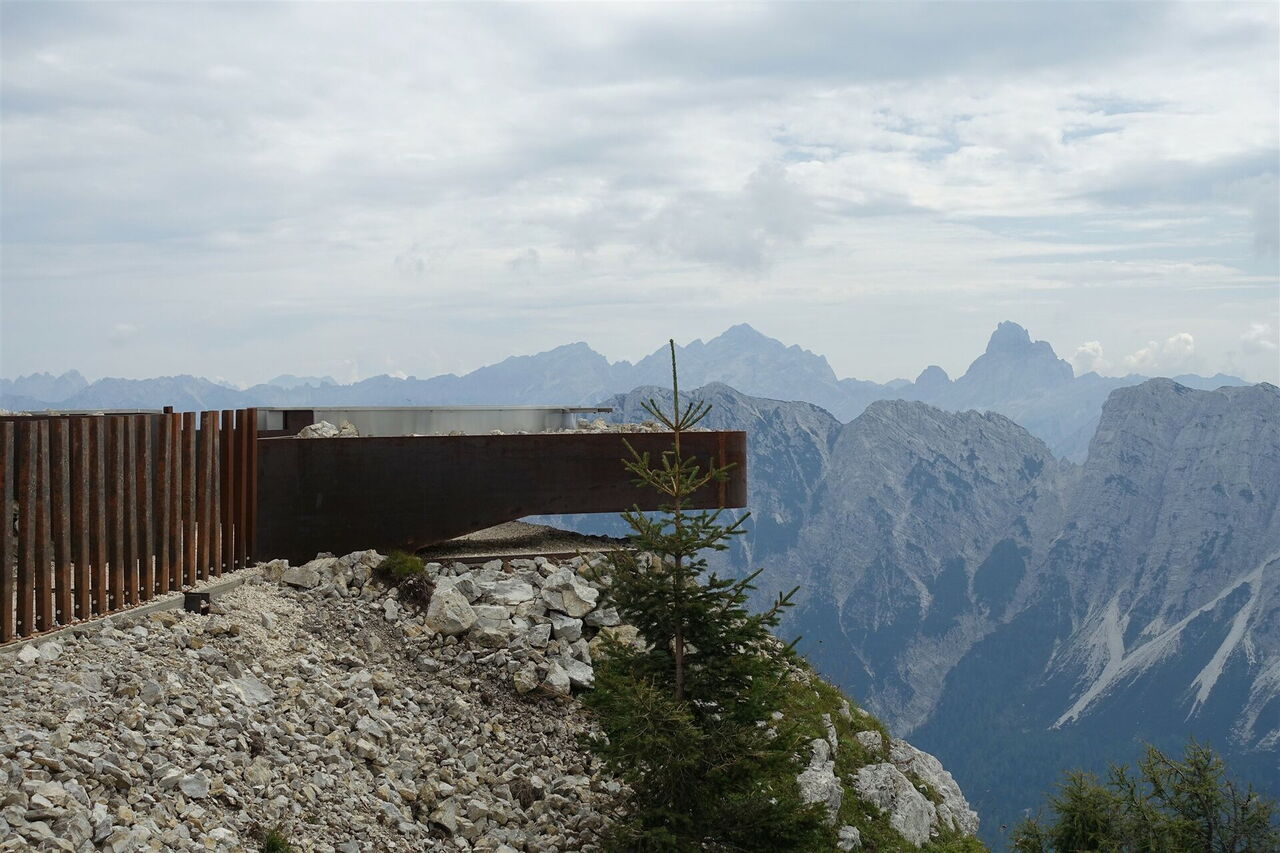 Vom Gipfel aus sehen wir bereits in westlicher Richtung das gläserne Dach des 03 MMM Dolomites (2.164 m). Dieses Museum befindet sich in einem alten Fort, erbaut zwischen 1912 und 1914. Es behandelt das Thema "Fels – die Erschließungsgeschichte der Dolomiten". Den Besucher erwartet eine große Galerie einmaliger Bilder aus den Dolomiten – von der Romantik bis heute. Nach dem Besuch gehen wir auf der Piste bergab. Wieder beim Rifugio Dolomites angekommen, gehen wir scharf rechts.