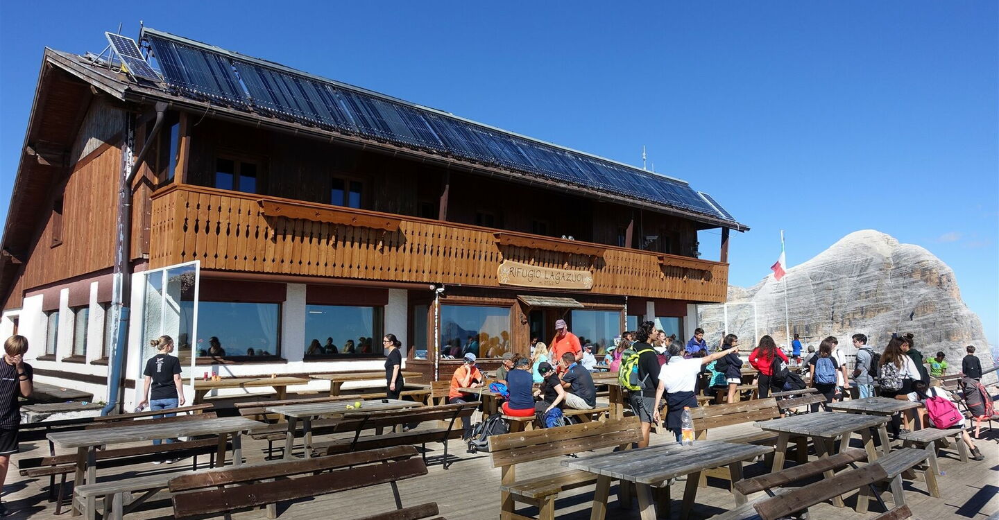 Startpunkt/Einstieg/Abbruch: Das Rifugio Lagazuoi ist zu Fuß und mit der Seilbahn vom Falzaregopass erreichbar und befindet sich am Ende der Tour 6. Einstieg/Abbruch: Am Falzaregopass besteht Busanschluss. Endpunkt: Das Rifugio Nuvolau ist nur zu Fuß erreichbar und befindet sich am Anfang der Touren 7, 25 und 26.
