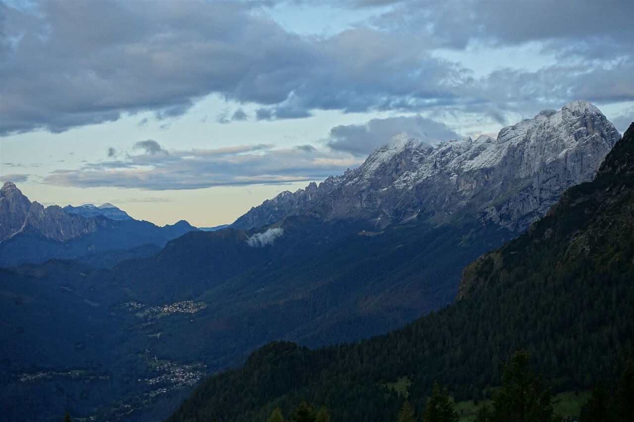 Das Civetta-Bergmassiv bildet gemeinsam mit den kleineren Gipfeln der Moiazza-Untergruppe die Civetta-Moiazza-Gruppe. Der höchste Punkt der Moiazza ist die 2.878 m hohe Cima Moiazza. Diese touristisch noch wenig erschlossene Region überzeugt durch landschaftliche Schönheit und ihre mit Blumen übersäten Almwiesen. Auf dieser außergewöhnlichen Etappe wandern wir entlang imposanter Felsnadeln wie dem 2.485 m hohen Torre Trieste oder dem 2.083 m hohen Torri del Camp und unterhalb der bis zu 700 m hohen Wandzonen der 2.413 m hohen Pala delle Masenade.