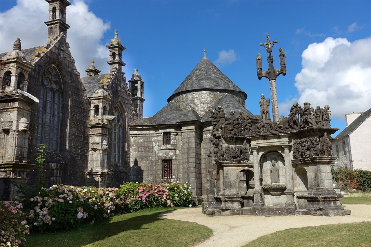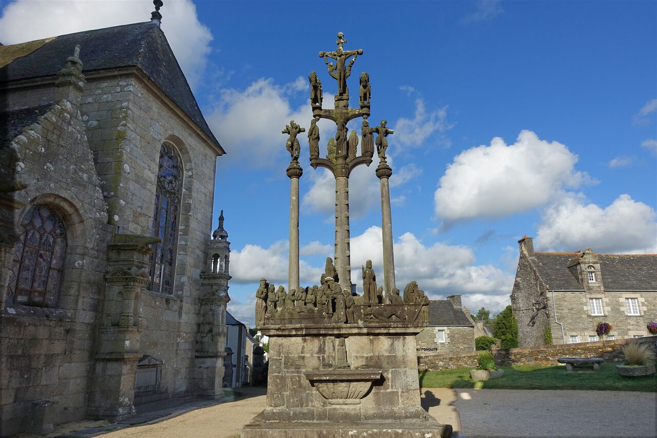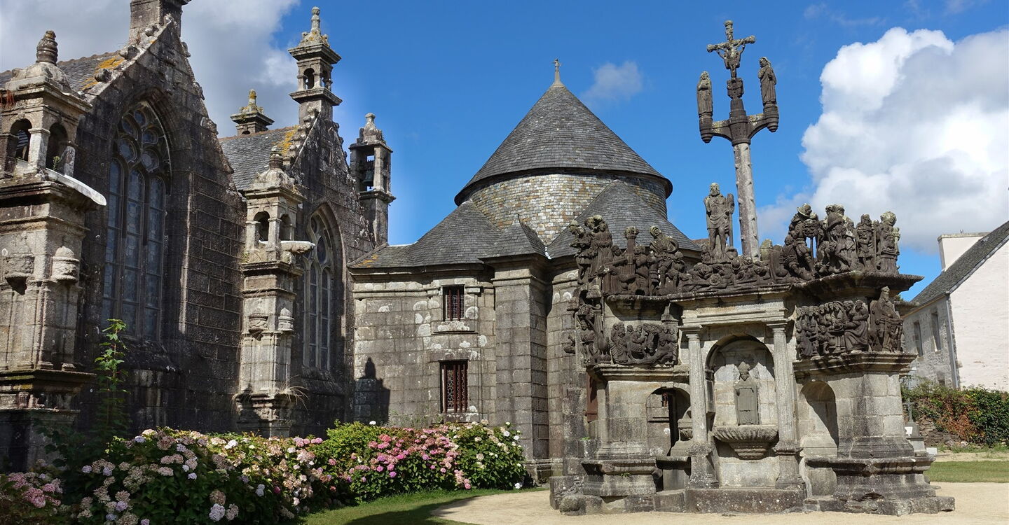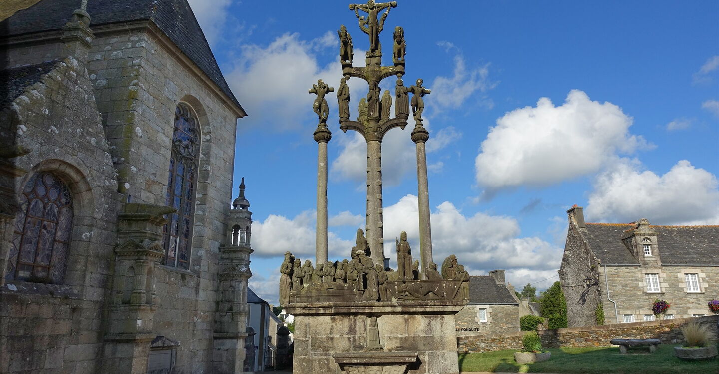 Mit der boomenden Wirtschaft in der Bretagne im 16. und 17. Jahrhundert begann das Goldene Zeitalter. Aus dieser Epoche stammen viele der architektonisch herausragenden Herrensitze der Adligen und Schlösser des Hochadels. Es entstanden einzigartige Pfarrbezirke, bestehend aus einer Kirche, einer Mauer, einem Triumphbogen und einem Kalvarienberg – die sogenannten umfriedeten Pfarrbezirke, Französisch: Les enclos paroissiaux. Es entstand eine Konkurrenz zwischen den Gemeinden bei der Umsetzung des schönsten architektonischen Werkes; die zwei schönsten erkunden wir auf der heutigen Wanderung. Zwischen den kulturellen Höhepunkten gibt es eine Menge Natur zu entdecken.