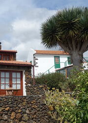 Vom (01) Start und Ziel (1041 m) an der Bushaltestelle und dem Casino gehen wir auf der von Platanen gesäumten Hauptstraße Richtung El Pinar. Direkt hinter dem gelben Briefkasten biegen wir rechts in die Stichstraße und kommen im weiteren Verlauf an der kleinen Dorfkirche vorbei. Am Ende der großen freien Fläche gehen wir am grünen Gebäude auf der Straße rechts, um dann bei der nächsten Möglichkeit halb rechts der Ausschilderung zum Arbol Garoe zu folgen.