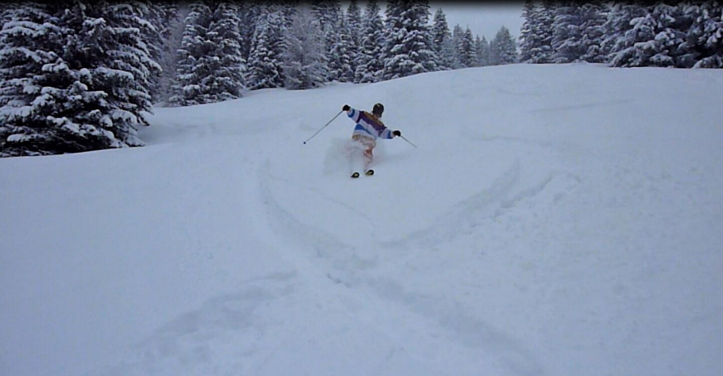 Nach 400 m erreichen wir eine freie Fläche mit einer sehr schönen Tiefschneeabfahrt bis auf die Piste 24, die nach La Villa führt.
