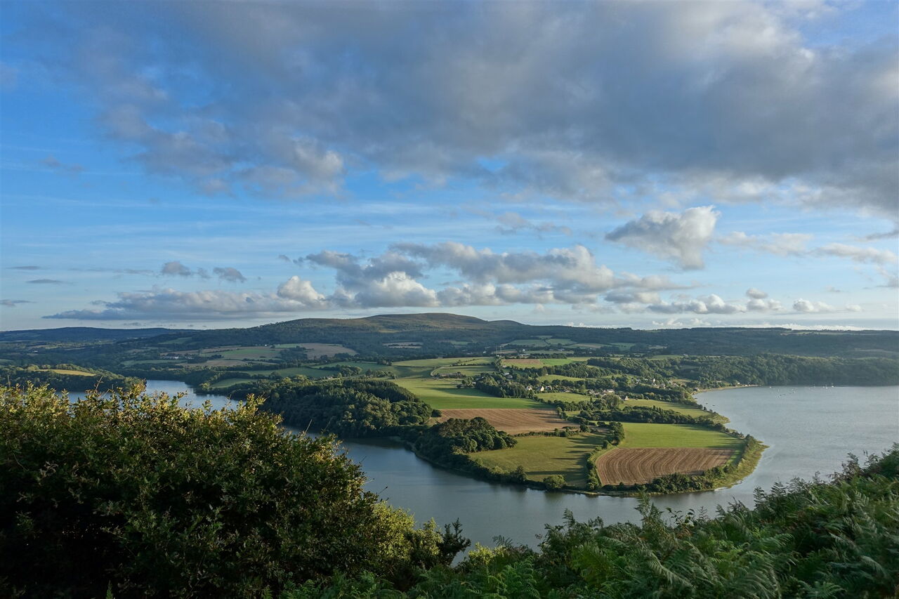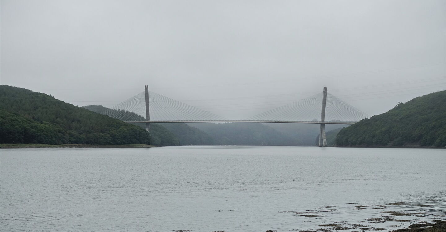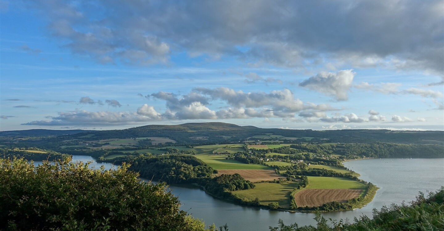 Die letzten Wölfe im Département Finistère wurden im 20. Jahrhundert erlegt. Eine Überlieferung berichtet, ein Wolf habe sich in die Fluten des Flusses Aulne Maritime gestürzt, um der jagenden Meute zu entkommen. Heutzutage wandert man unbesorgt entlang der herrlichen Mündung der Aulne Maritime, die eine liebliche Landschaft geformt hat: Küstenwälder mit Maronenbäumen und mächtigen Eichen, Felder, Schilf, Watt und Kieselbuchten. Auf der gegenüberliegenden Uferseite erhebt sich die eindrucksvolle Silhouette des Berges Menez-Hom. Die architektonisch sehr interessante und geschwungene Hängebrücke Pont de Terenez passt nicht so ganz in das Naturspektakel – trotzdem ein faszinierendes Outdoor-Abenteuer.