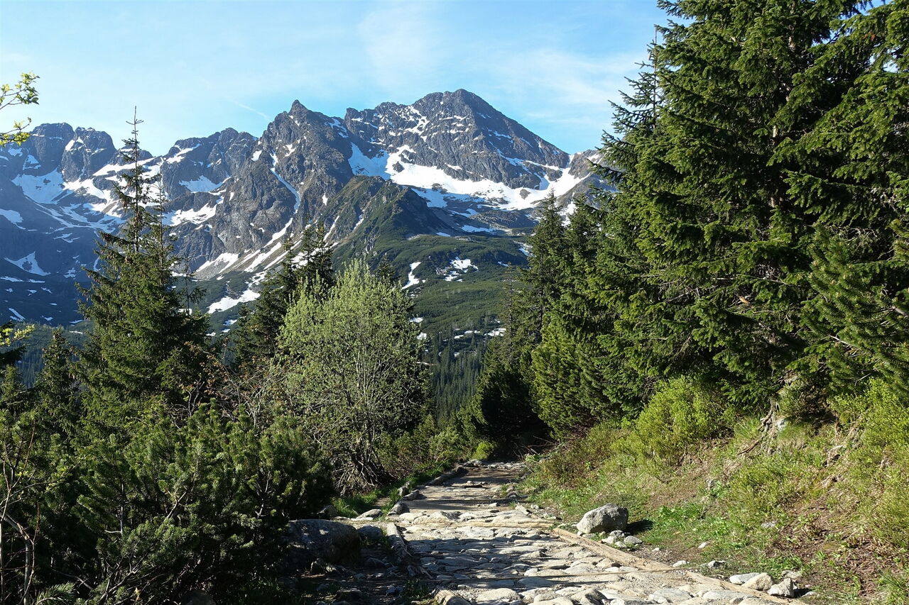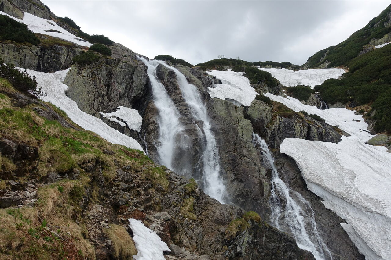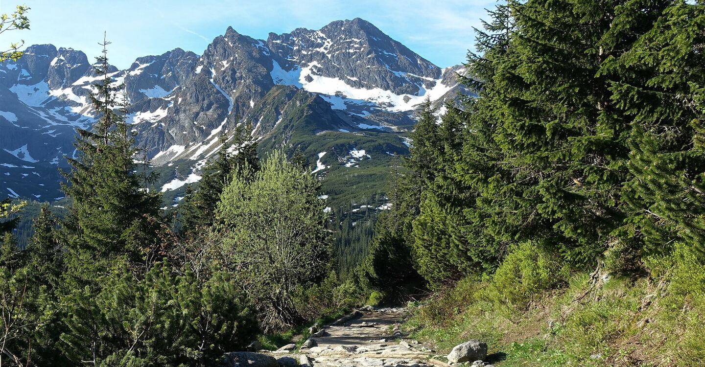Von der malerisch an einem See liegenden Schronisko Górskie PTTK wandern wir nur wenige Meter bis zum höchsten Wasserfall Polens. Der Gletschersee Wielki Staw Polski, in der Dolina Pięciu Stawów Polskich gelegen, fließt über vier Kaskaden in das Dolina Roztoki. Der Wassersturz Siklawa überwindet dabei 80 m. Nach diesem Naturschauspiel steigen wir entlang des Bachlaufes Roztoki durch das ca. 5 km lange Dolina Roztoki ab. Wir schreiten durch gut erhaltenen Baumbestand, viele Bäume sind ca. 300 bis 400 Jahre alt. Auf dem Hauptweg angekommen, befindet sich auf der linken Seite der 10 m hohe Wasserfall Wodogrzmoty Mickiewicza. Den Wanderer erwarten auf dieser Tour schneebedeckte Berge bis in den Juni, tiefblaue Seen und das ständige Rauschen der Bäche und Flüsse.