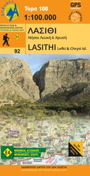 Nach kurzem Abstieg treffen wir auf Wegweiser Richtung Selakano und links zum 2148 m hohen Afentis Christos. Wir gehen geradeaus, weiter bergab, auf einen sehr gut auszumachenden Pfad, der unterhalb der steil abfallenden Felswände des 2148 m hohen Dikti verläuft. Wir queren ein Spülfeld nach rechts, gehen 300 m parallel zu diesem und queren es dann nach links, bis wir auf eine Piste treffen, die uns auf das Limnakaron-Plateau führt – mit der Heiligen Geist 03 Kirche (1125 m). Dreht man sich um, ergibt sich ein atemberaubender Blick auf das Diktigebirge. Wir gehen auf der Schotterpiste weiter, biegen bei der nächsten Möglichkeit aber nicht links ab, sondern verlassen nach 120 m die Piste, um auf dem gerade bergauf verlaufenden Pfad Richtung Einsattelung aufzusteigen.