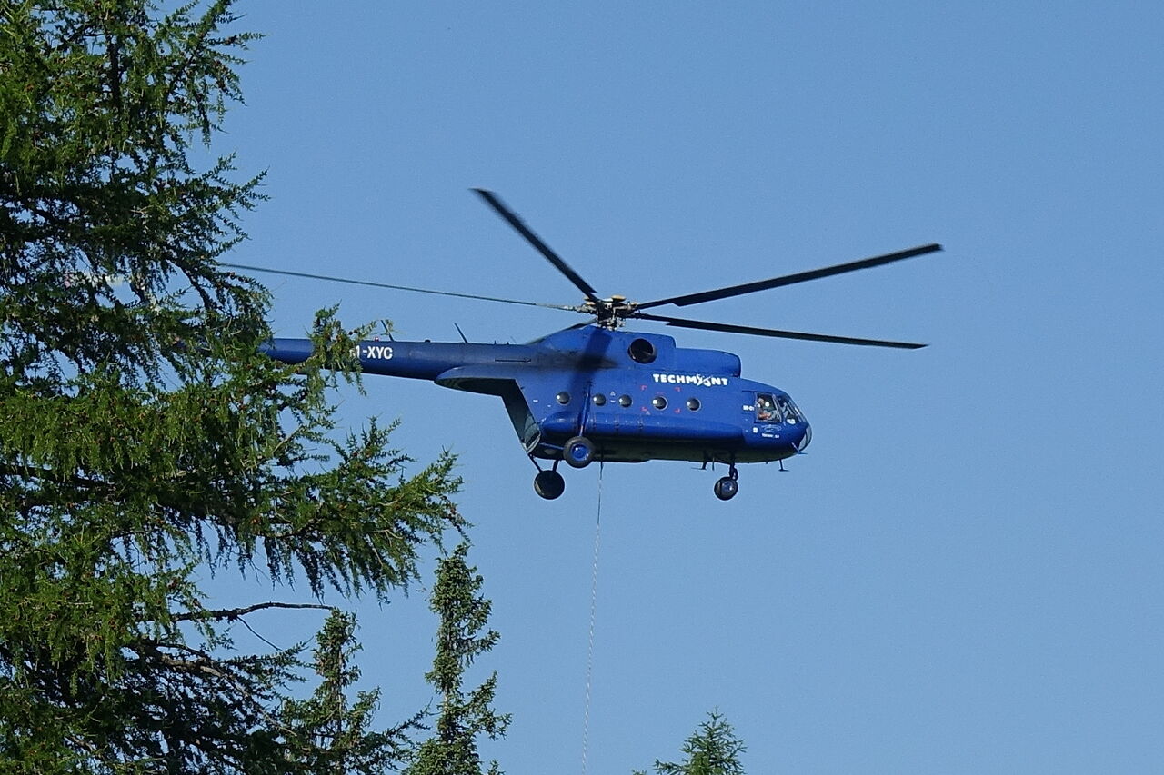 Im oberen Teil der Ortschaft 01 Starý Smokovec (1017 m), zwischen der Standseilbahn und der grünen Villa, verlässt ein Pfad Richtung Berge die asphaltierte Straße. Wir laufen teilweise parallel zur Standseilbahn und tangieren auch die Zufahrtsstraße zum Hrebienok.