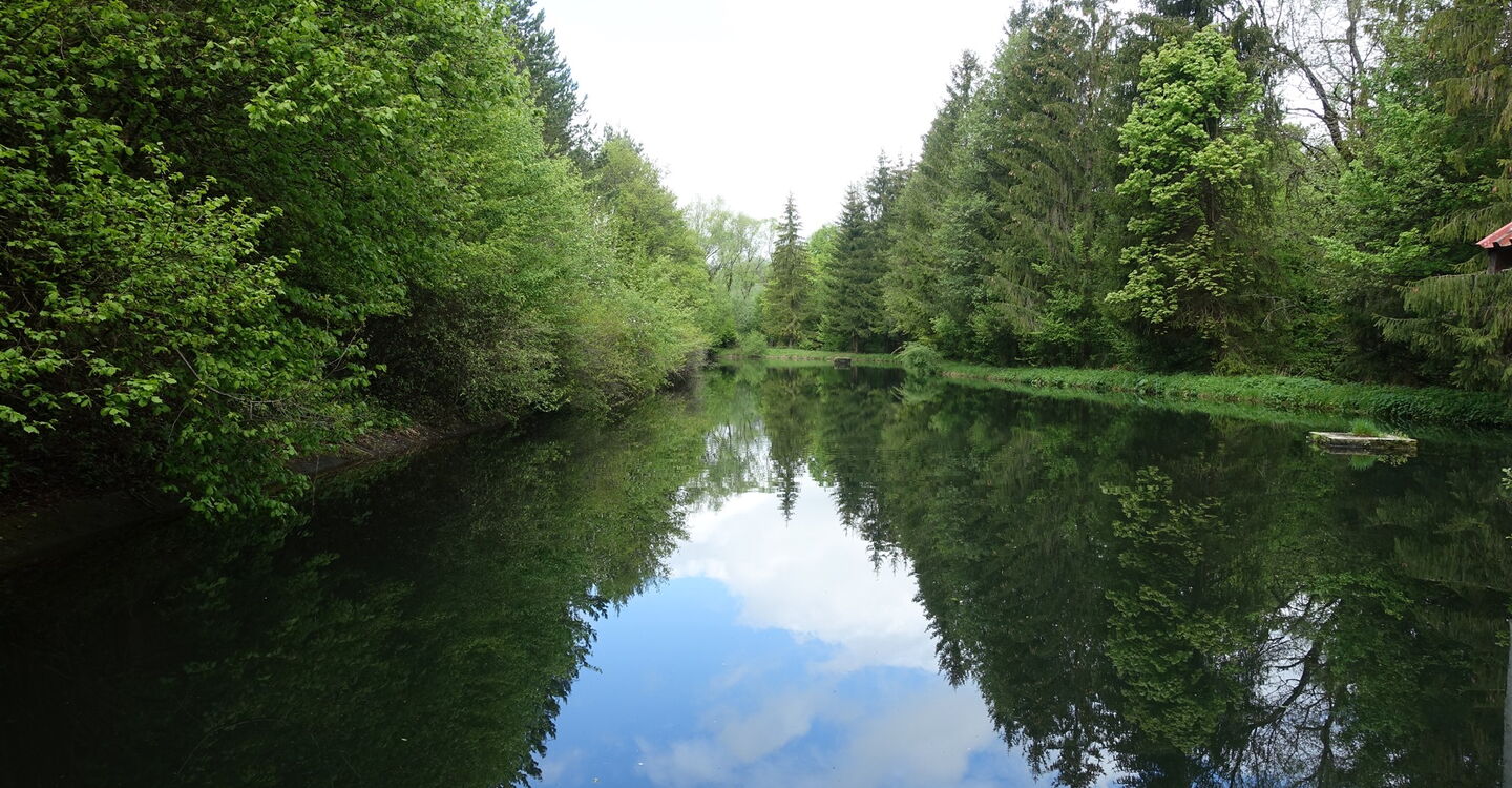 Nach einer Linkskehre endet der Wirtschaftsweg hinter einem Wildgehege. Je nach Jahreszeit und dem, was auf dem Feld ausgesät ist oder auch nicht, gehen wir nun weglos am Waldrand oder auf einer Fahrspur bergauf. Nach ca. 200 m gehen wir rechts auf dem Wirtschaftsweg weiter. Bei der nachfolgenden Weggabelung gehen wir links auf einem idyllisch gelegenen Waldweg, der dann in einen Fahrweg mündet. Dieser führt vorbei an einem Tümpel und endet nach einem längeren Wegstück bei einer asphaltierten Straße. Auf dieser gehen wir ca. 190 m rechts, um dann kurz vor einem Heiligenschrein die 03 Straße (518 m) nach links zu verlassen. Auf einem Wirtschaftsweg gehen wir in Richtung eines Strommasts.