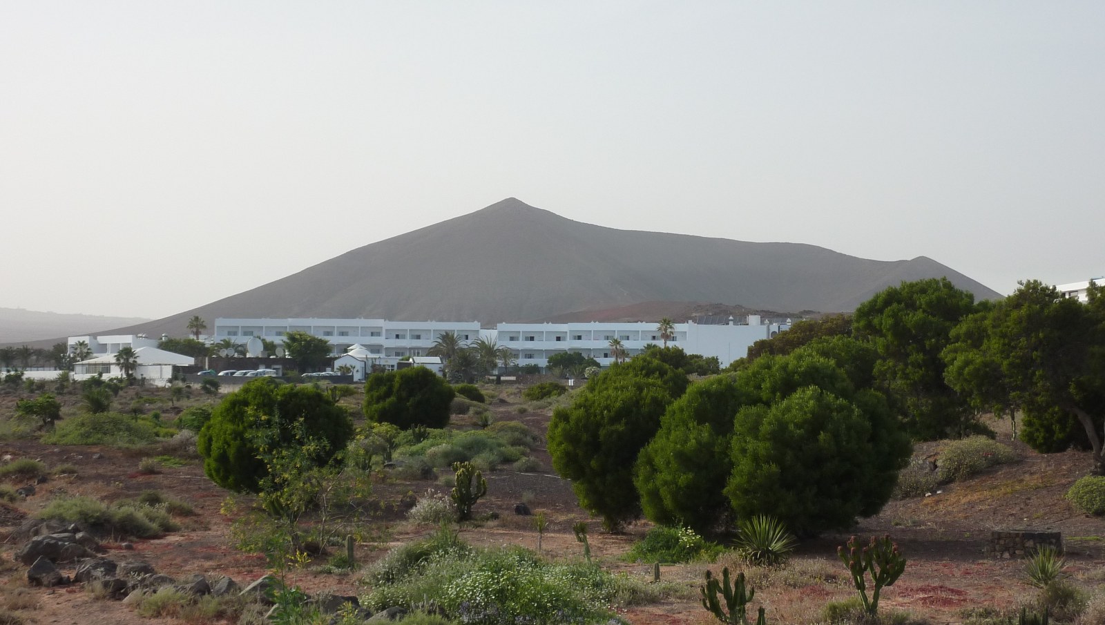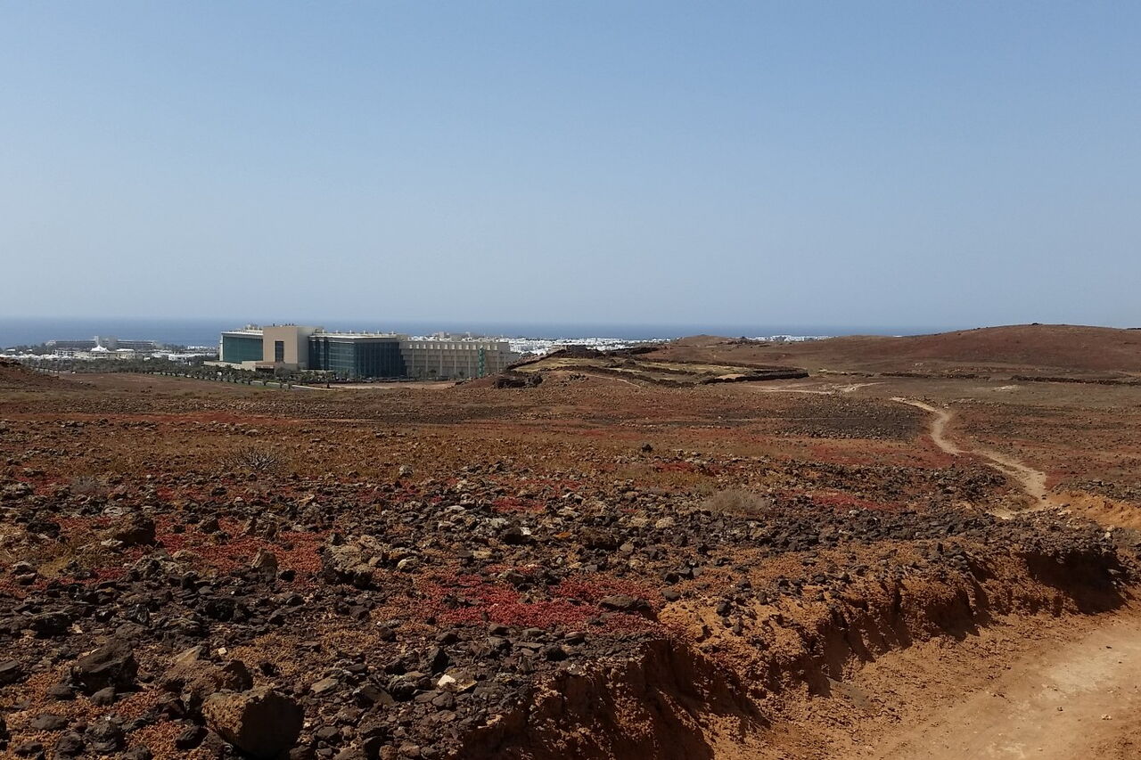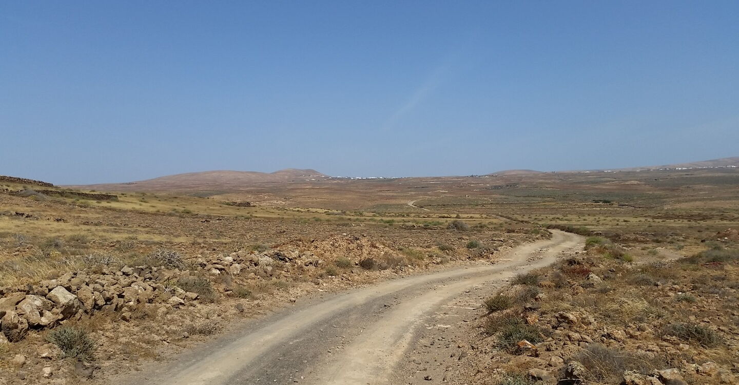Wir müssen die Hauptstraße umgehen, indem wir 400 m links gehen - parallel zur LZ-1. Wir unterqueren die LZ-1 und gehen anschließend sofort wieder rechts - abermals parallel zur LZ-1 -, um nach 400 m links auf dem Schotterweg weiterzuwandern. Nach einigen Metern folgt das Schild "important birds area" und nach 1 km queren wir eine Kreuzung. Im Abstand von 300 m geht es vorbei an einem Haus auf der rechten sowie einem weiteren Haus auf der linken Seite der Schotterpiste. Kurz hinter einer Anhöhe, es geht leicht bergab, gehen wir bei der Weggabelung rechts. Unmittelbar danach queren wir ein Barranco. Nach einem Wegstück mit hellem Sandboden, rechts von uns schaut man in die Öffnung des (04) Vulkans Monte Corona (71 m), nehmen wir bei der folgenden Weggabelung den rechten Pfad Richtung Hotel Beatriz.