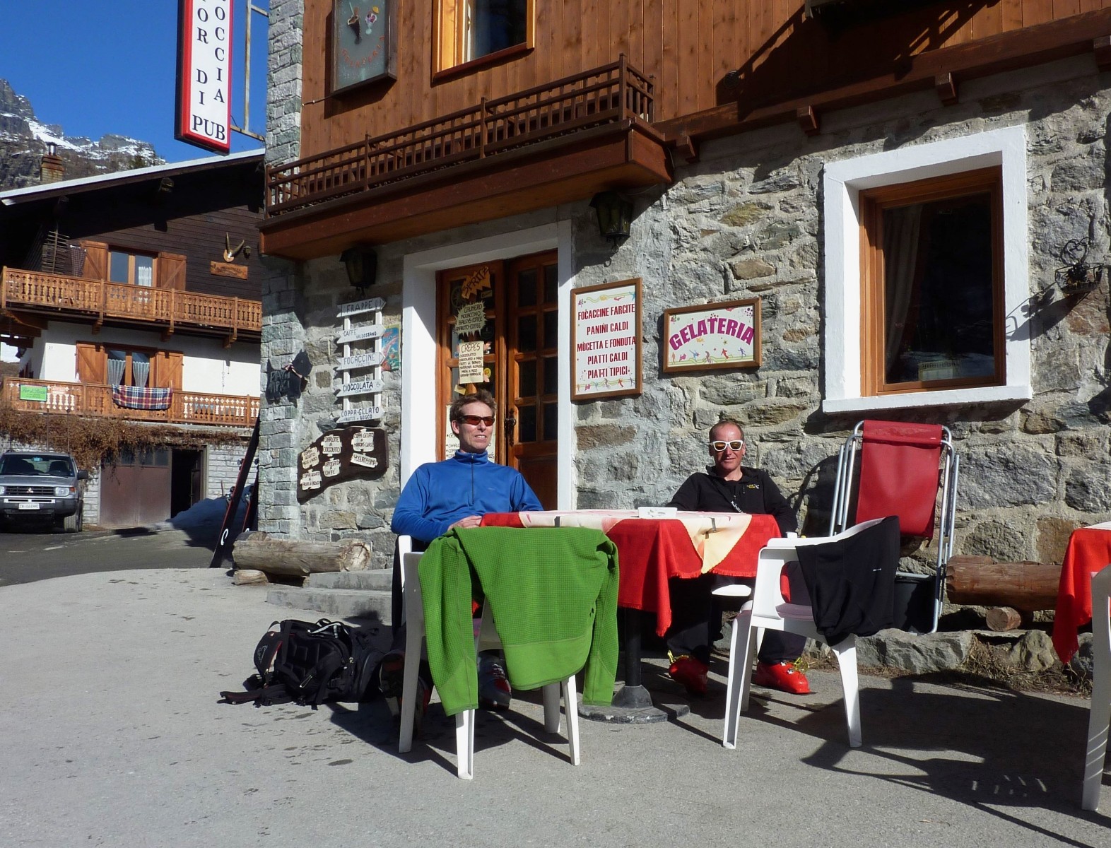 Nach dem Mittagessen hat uns der Capo des Bub mit seinem Fiat zur 1 km entfernten Seilbahn, die uns wieder ins Skigebiet bringt, gefahren. Sonst kann man ein Taxi, Tel. (0039) 335 6 62 67 48, bestellen.