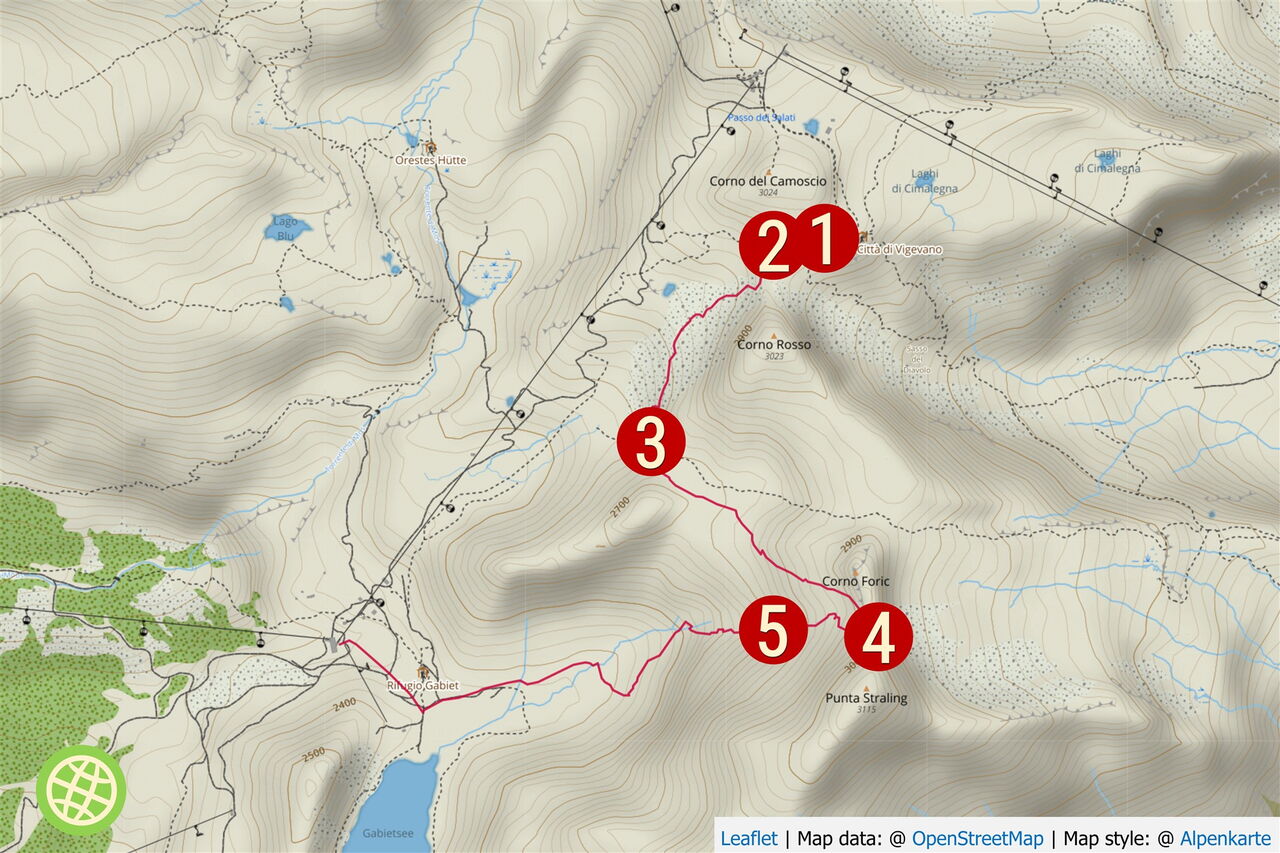Von der Bergstation der Seilbahn Nr. 30 Pianalunga Salati fahren wir zum Rifugio Città di Vigevano ab. Von dort geht es rechts 15 hm im Anstieg über den Passo Olen um zur Abfahrt zu kommen.