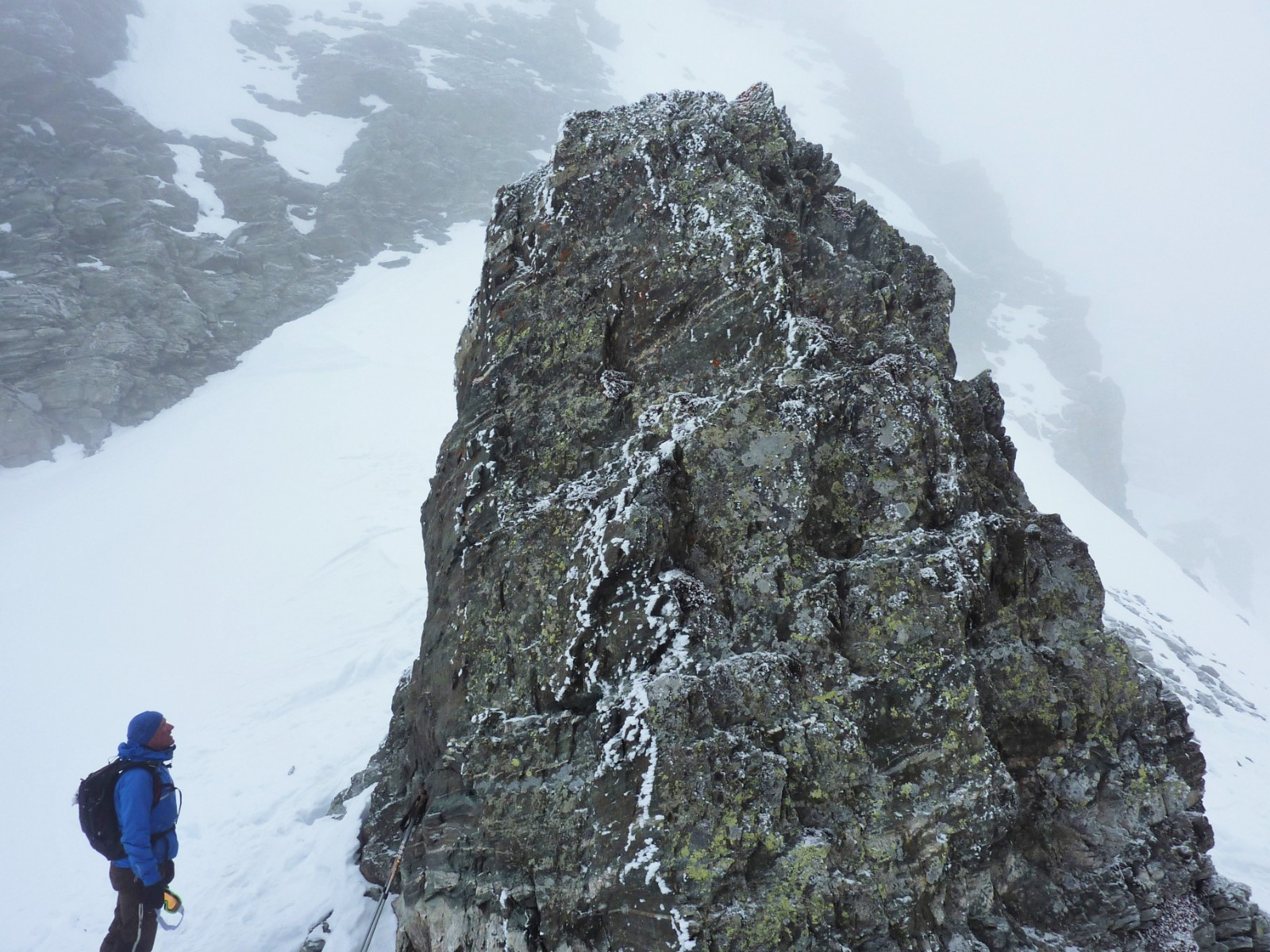 Einfache Abfahrt über den Gletscher. Bitte unbedingt die Absturzwarnung hinter dem Canyon beachten. Die Abfahrt führt über einen Westhang. Folgende Ausrüstung wird empfohlen: Produkte für alpine Sicherheit im Schnee, Tourenski und Skitourenhelm. Es gibt keine Einkehr auf der Tour. Außer man nimmt vor oder nach der Tour eine Stärkung in dem Rifugio Città di Vigevano. Beste Jahreszeit: Januar bis April. Uns erwarten kurze Stücke mit bis zu 30° Hangneigung.