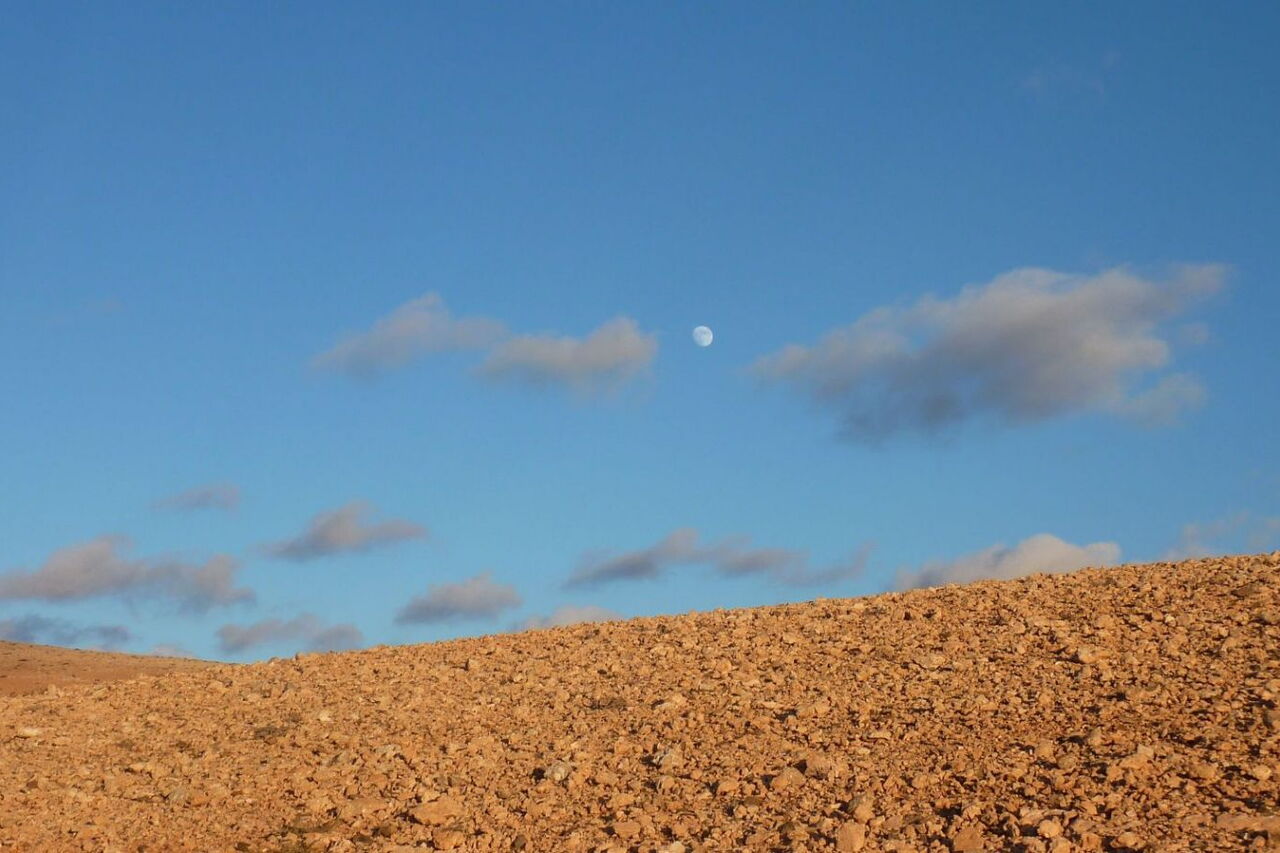 Die andauernde Wasserknappheit war schon immer eines der größten Probleme auf Fuerteventura. Überall auf der Insel sieht man deshalb kleine Staustufen. Diese Wanderung führt um den einzigen nicht verlandeten Stausee auf Fuerteventura. Im ersten Teil steigt der Weg durch die seichten, bei Abendlicht ockergelb erscheinenden Hügelketten an, um dann nach dem höchsten Punkt der Wanderung gemächlich zum Stausee abzufallen. Wir gehen anschließend 600 Meter parallel zum Stausee, bis wir ihn bei seinem südlichsten Zulauf überqueren. Es folgt ein Wegstück durch ein extrem karges Landschaftsbild, bis wir durch eine bewirtschaftete Region wandern und wieder am Ausgangspunkt ankommen.