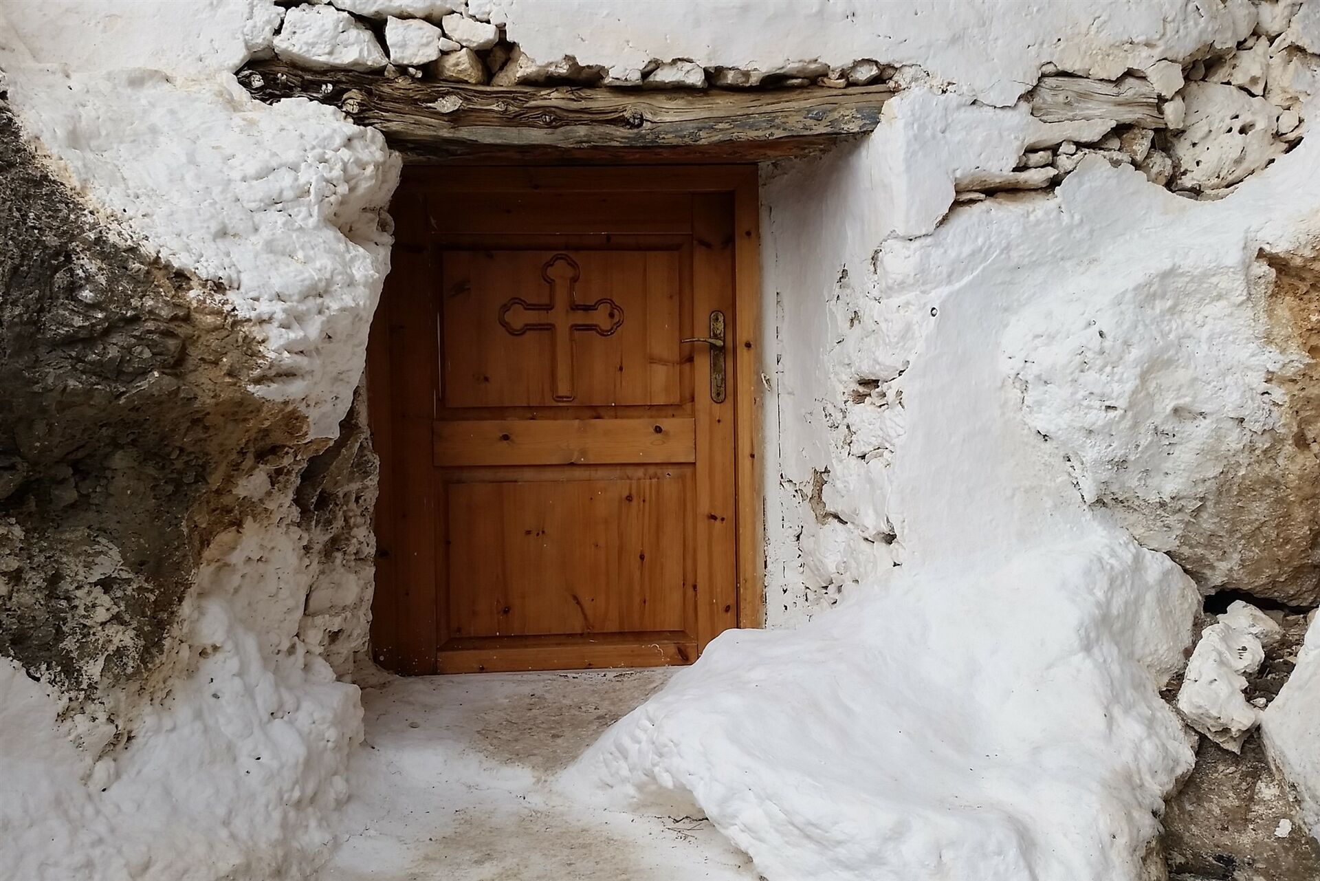 Beim Abstieg über die fruchtbaren Felder staunen wir über die atemberaubenden Ausblicke auf die vorgelagerten Inseln und freuen uns auf ein erfrischendes Bad in der Ägäis. Nach so viel Natur folgt ein bisschen Kultur, wir erreichen die Grotte von Amarthos. Unter einem riesigen Felsblock befindet sich eine niedrige Höhle. Ein Teilbereich ist zugemauert und wurde zu einer Kapelle umgestaltet. Das Außergewöhnliche: In dieser extrem trockenen Region tropft es von der Decke in Blechwannen. Unweigerlich fragt man sich, wo das Wasser herkommt. Es haben sich Tropfsteine gebildet, wovon einer tatsächlich, mit viel Einbildung, wie eine Frauenbrust aussieht. Damit hat das Ganze nun eine besondere Bedeutung und ein Ikonenbildchen zeigt das auch. Auf diesem hat die Mutter Maria ihr Kleid geöffnet und gibt dem Jesuskind eine Brust zum Trinken. Das ist nun kein gewöhnliches Wasser, das da von der Decke tropft, sondern "Milch der Mutter Gottes".