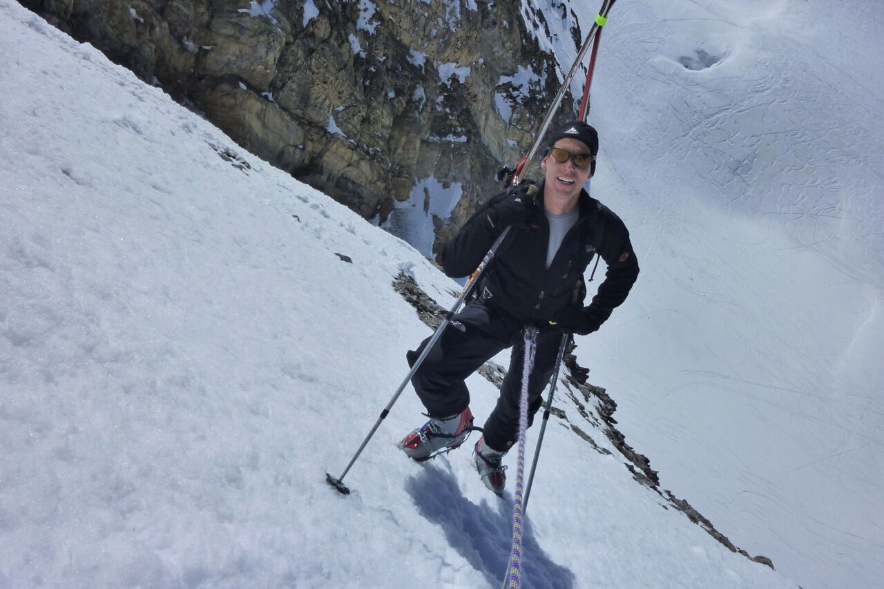 Nun folgt ein sehr steiler Aufstieg mit Steigeisen und Seil, für mich Flachlandtiroler schwierig und für viele andere vielleicht auch. Die ersten 250 hm zum Eisseepass sind geschafft.