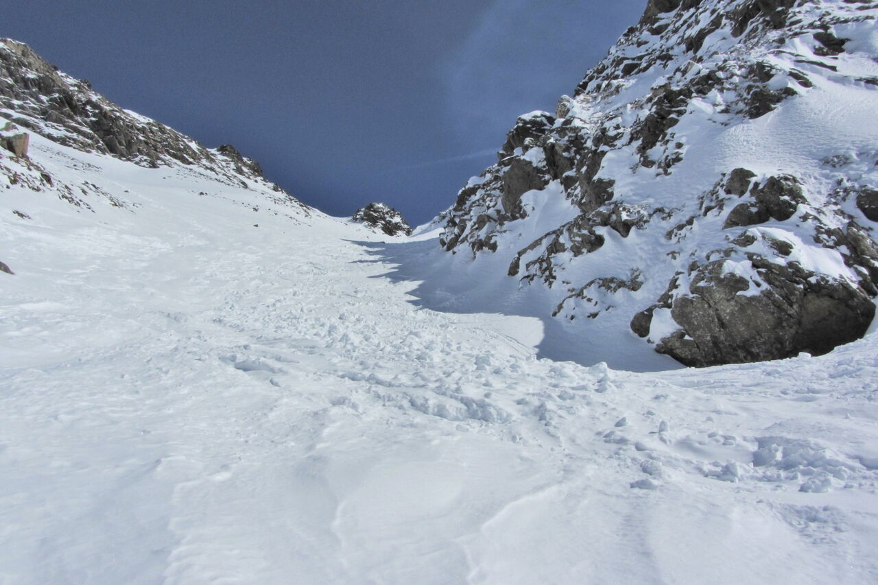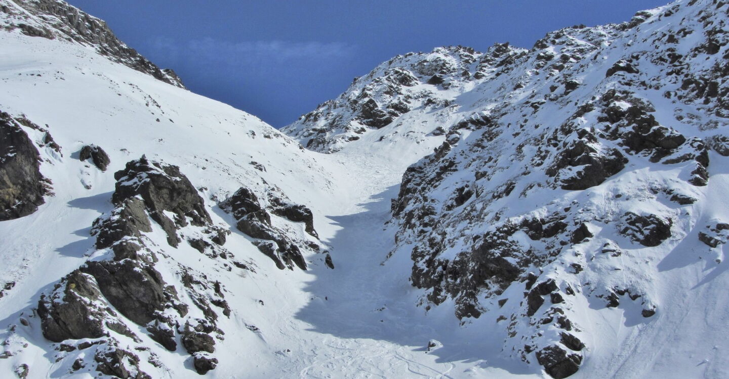 Einfache Orientierung auf dem Freeride-Stück außerhalb der markierten Pisten. Die Abfahrt führt über einen Westhang. Folgende Ausrüstung wird empfohlen: Produkte für alpine Sicherheit im Schnee, Freerideski und Skitourenhelm. Es gibt keine Einkehr auf der Tour. Beste Jahreszeit: Januar bis April. Uns erwarten kurze Stücke mit bis zu 40° Hangneigung.