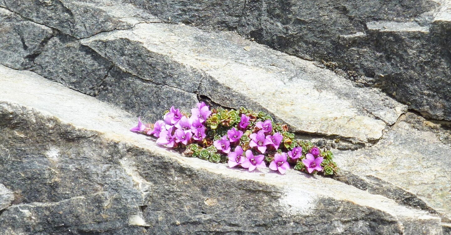 Wir steigen wieder zum Madritschjoch auf. So kommen wir ins Skigebiet zurück. Am Weg finden wir die ersten Frühlingsboten.