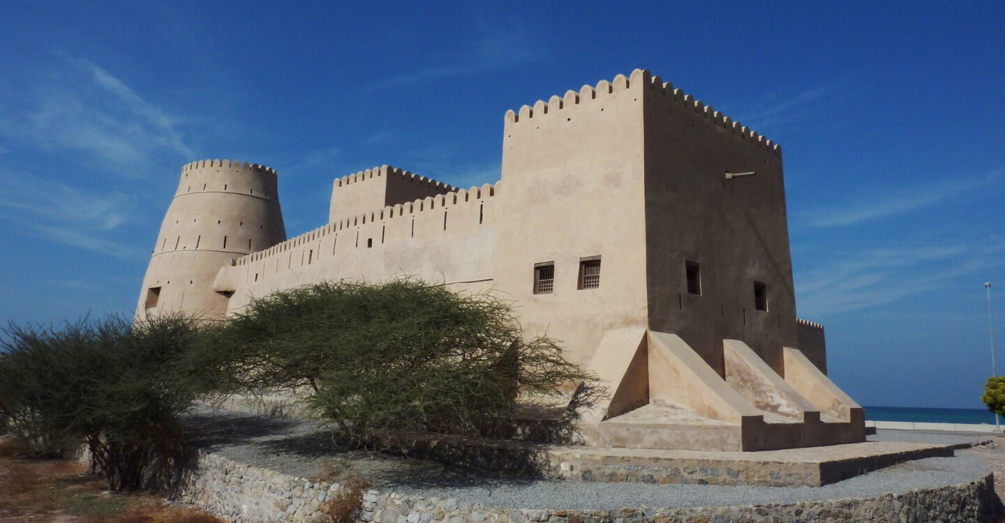 Wir überqueren die Grenze zum Oman und kommen schon bald in den kleinen Ort Bukha. Hier können wir das neuere Fort an der Hauptstraße und das alte Fort Al Qala auf einer Anhöhe erkunden.