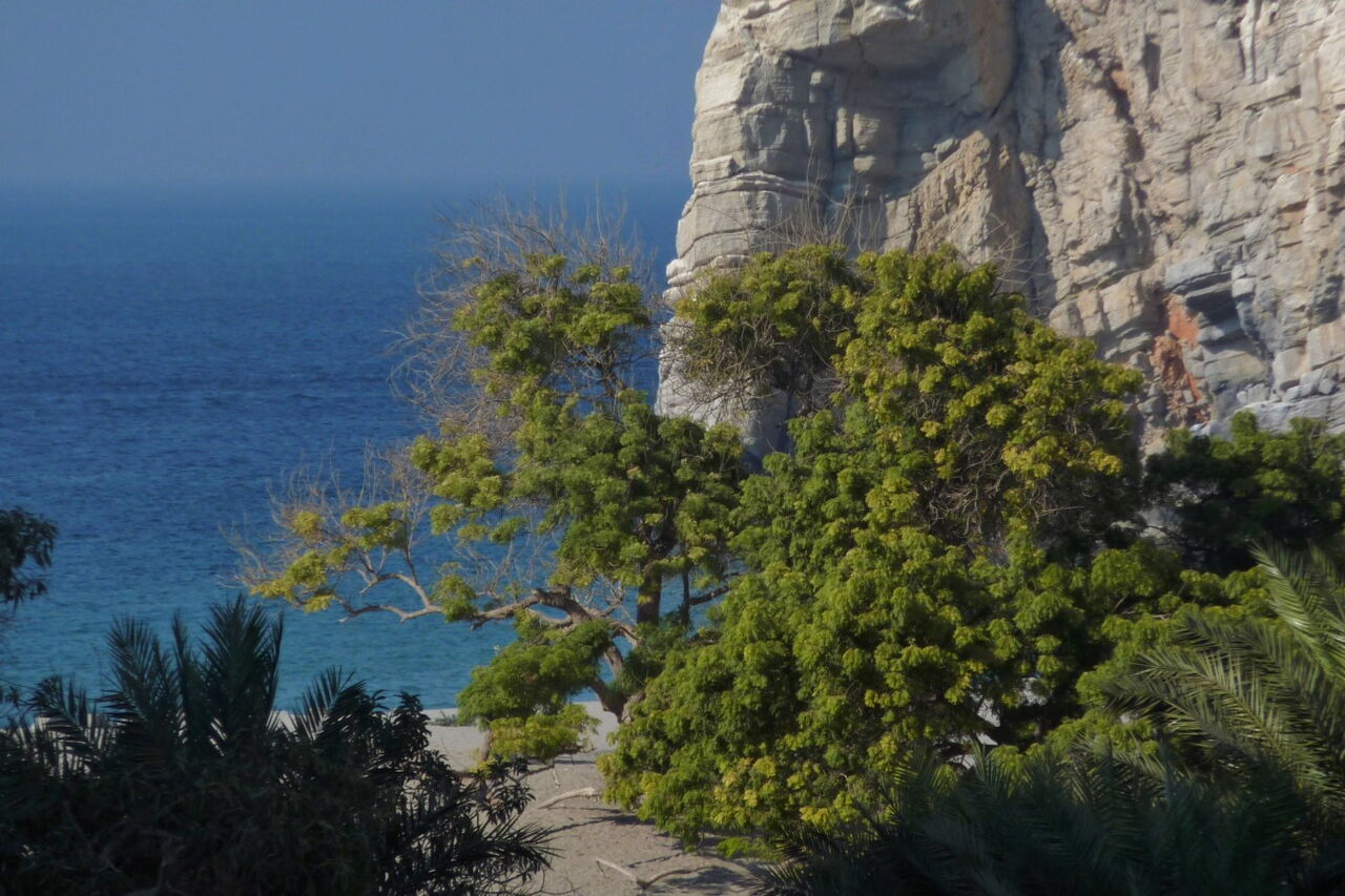 Schon nach 1 km Entfernung können wir die ersten Blicke auf die Traumbucht erhaschen. Was wir sehen, ist eine Oase mit Palmengärten und grünen Bäumen.