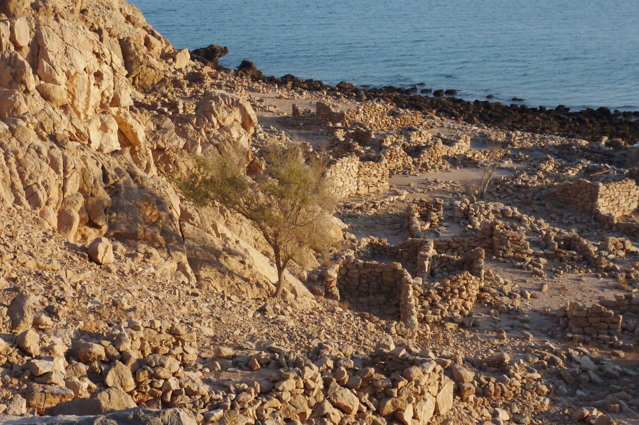 Vom Hotel gehen wir Richtung Norden am Strand entlang, bis wir auf ein altes Steindorf treffen.