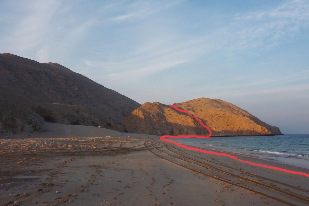 Die Garmin-Navigationsgeräte erlauben die Eingabe der GPS-Koordinaten N25 40.189 E56 16.272. Sie führen dich zum Startpunkt, von wo du den heruntergeladenen GPS-Track verwendest.